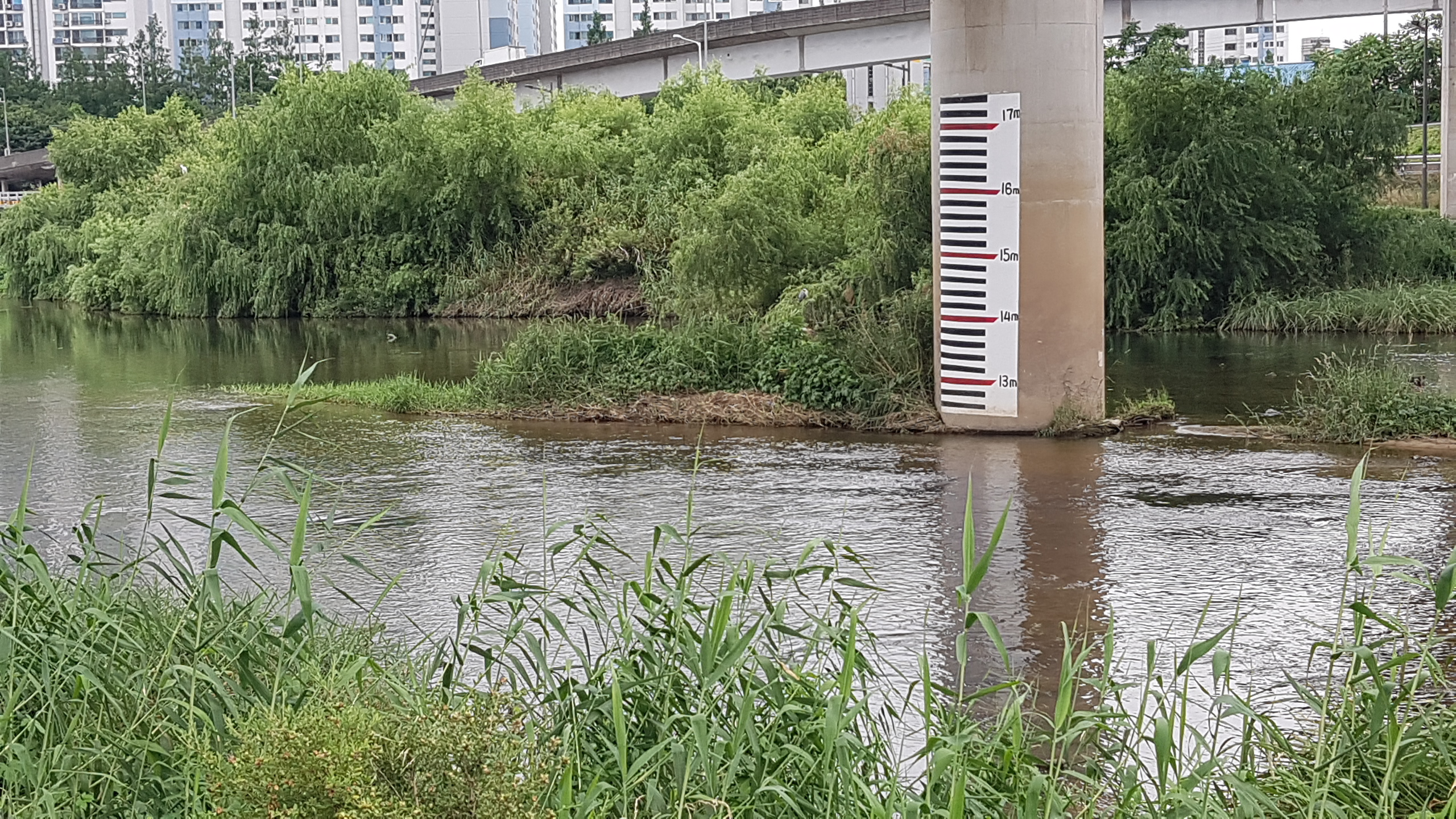 맨 아래쪽 중랑천의 지금 수위가 12m쯤 되나 보다.