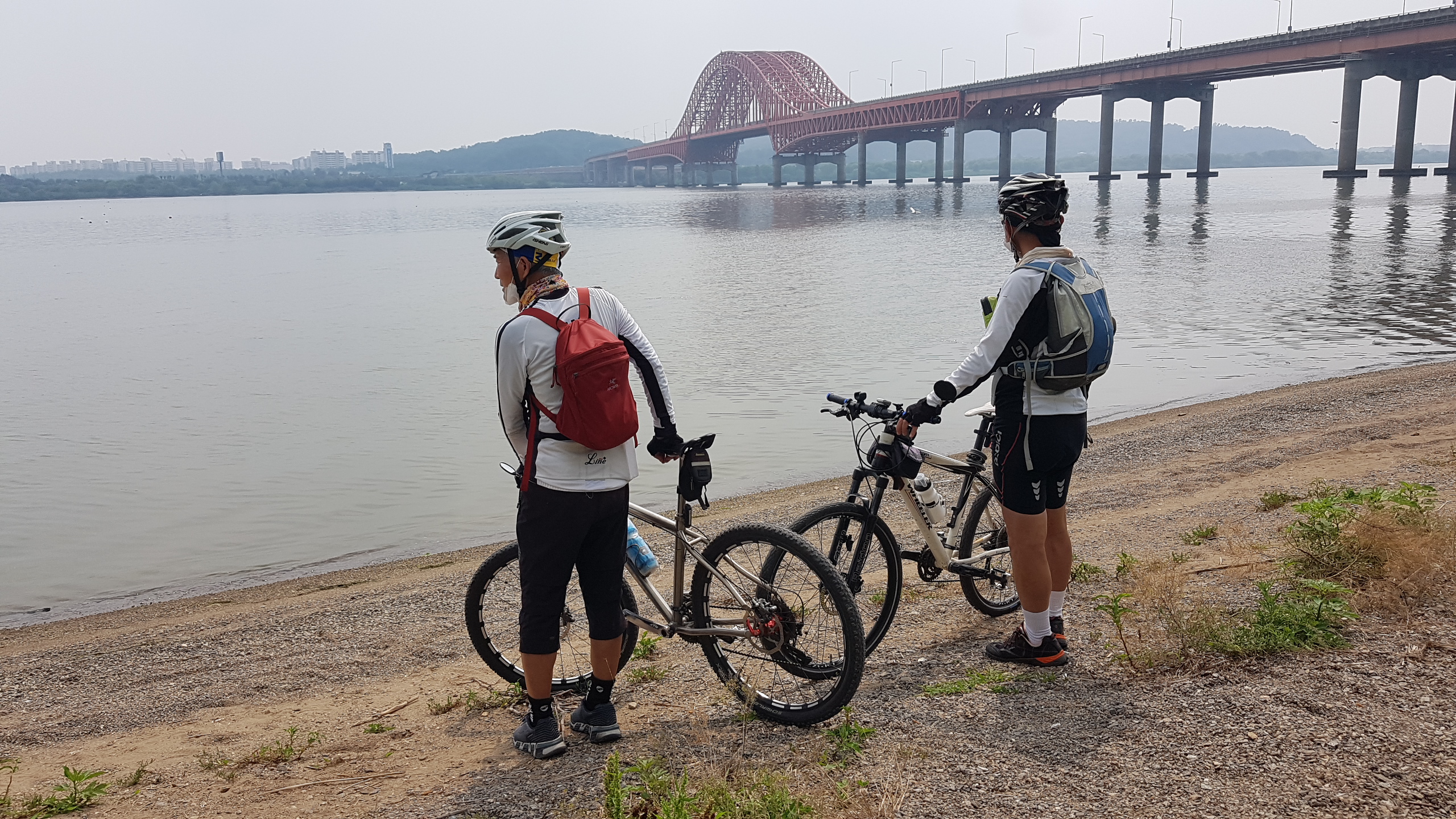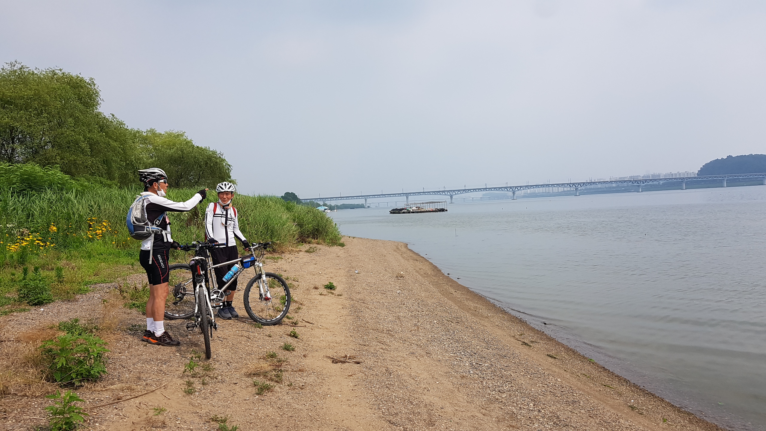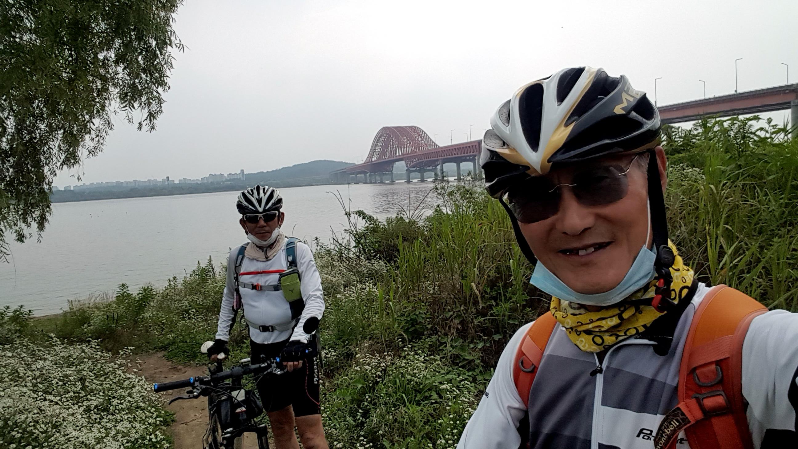 동기회 7월 3째 일요일의 월례 저전거라이딩이다. 여름날인데도 비가 안내리고 그리 덥지도 않은 라이딩에 딱 적절한 날이다.6~7명이던고정멤버가 당분간 3명으로 줄어들었지만 겨울 여름 가리지 않고 매월 빠짐없이 진행하고 있다.