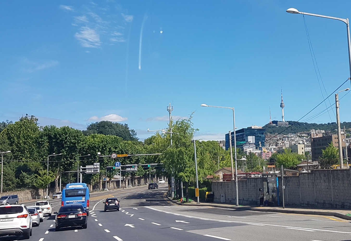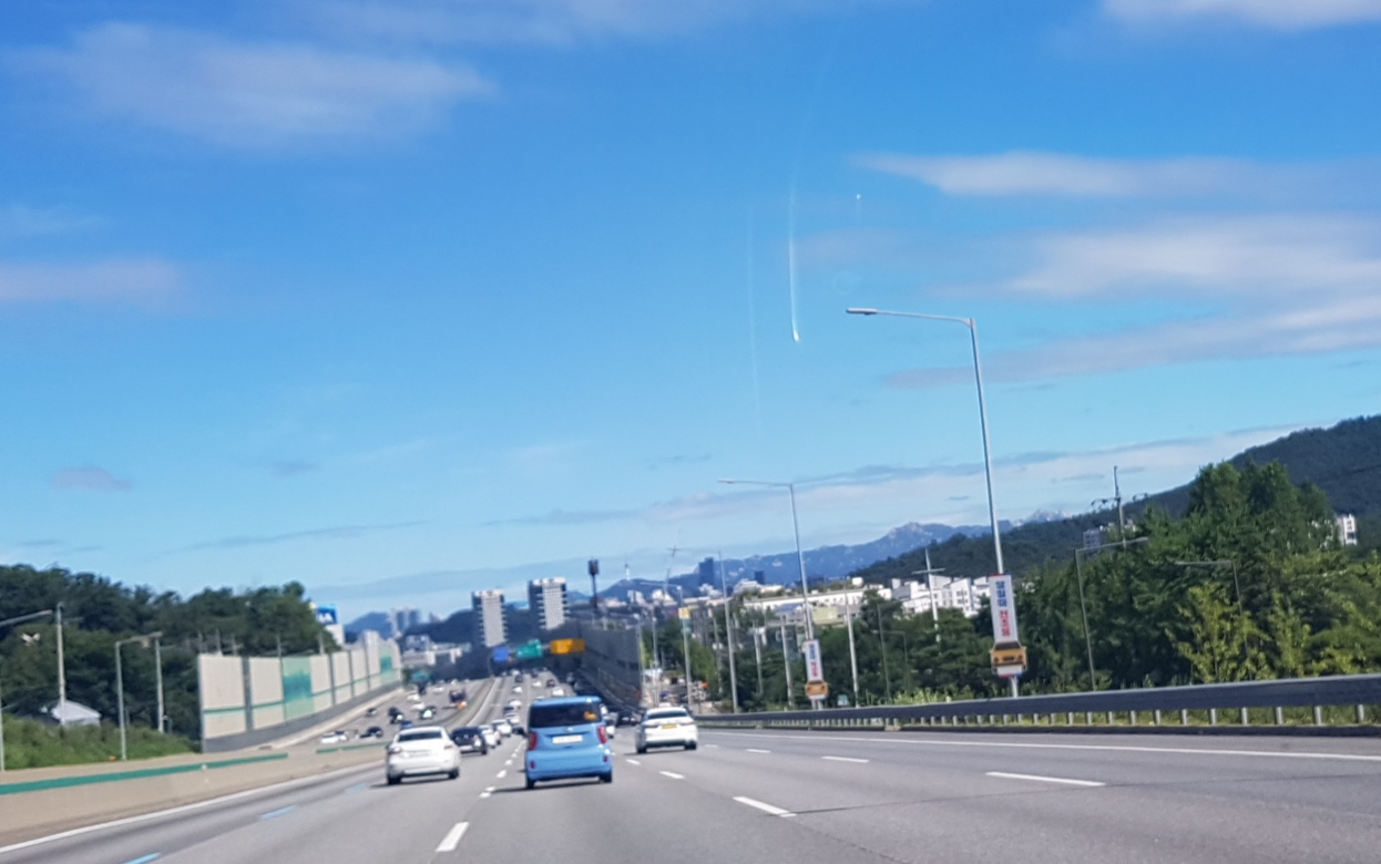 경부고속도로 서울로 오는 길의 서울 하늘은 무척 깨끗하다. 멀리 잠실 롯데타워가 다 보인다.