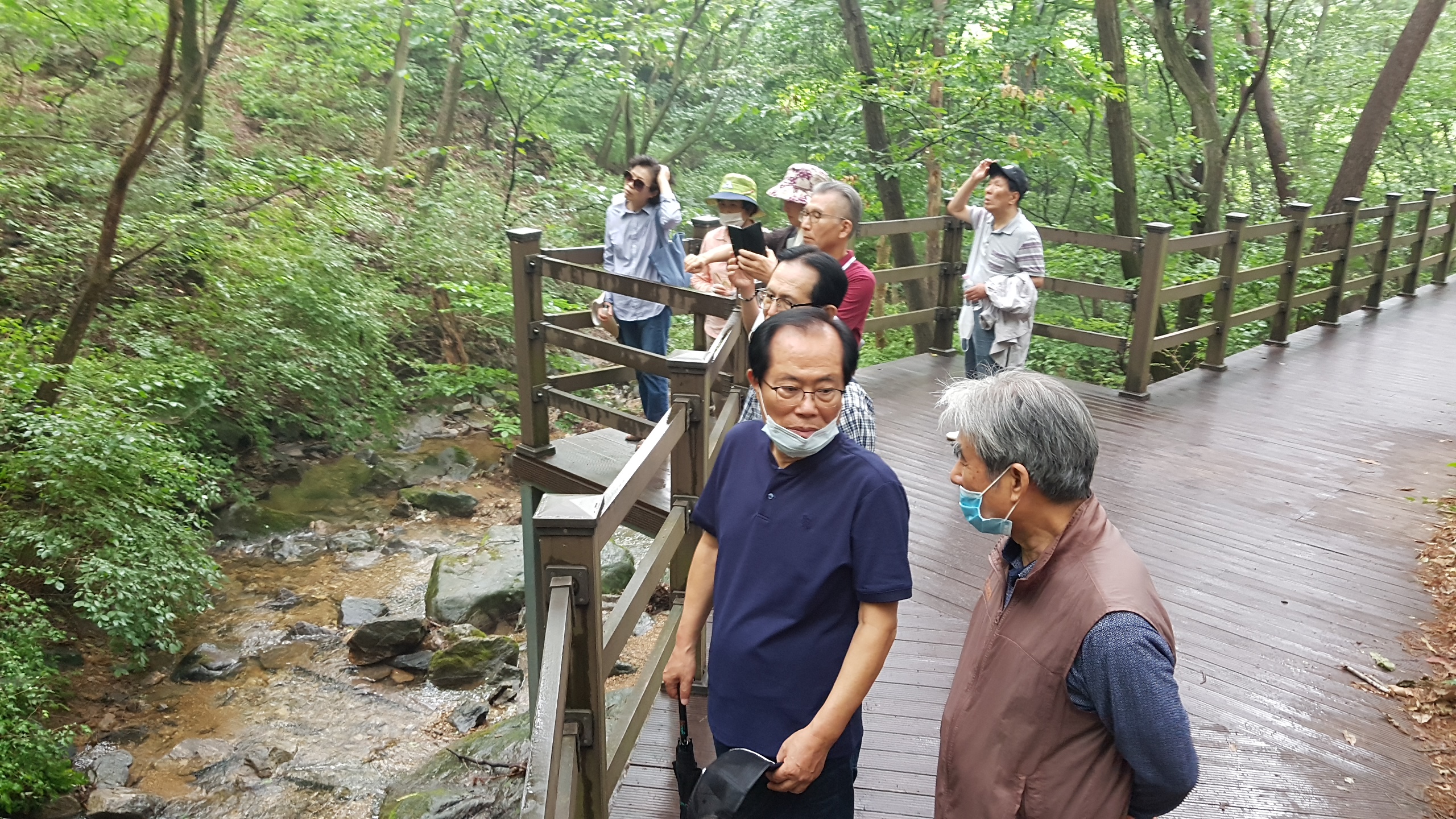 7.27(월) 15시, 인덕원역 2출구에 고교 친구와 가족들 일육우보회 10명 모여 마을버스로 바라산 맑은숲으로 이동, 숲해설사의 안내와 설명을 들으며 임도따라 휴양림 쪽으로 숲길을 걷고 버스타고 인덕원역 부근 맛집식당에서 저녁식사