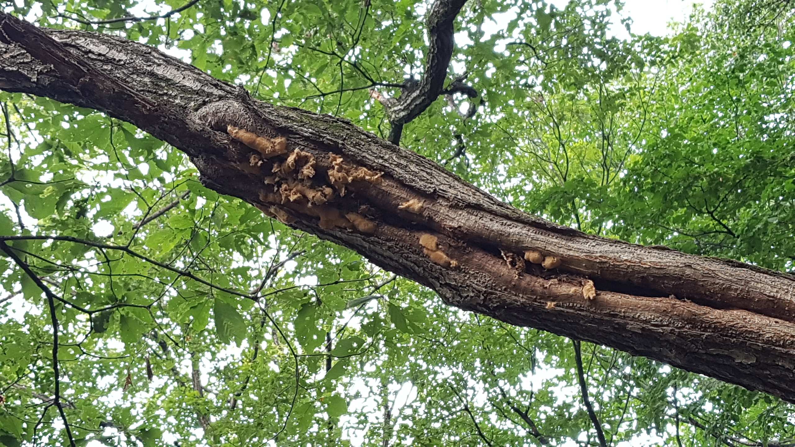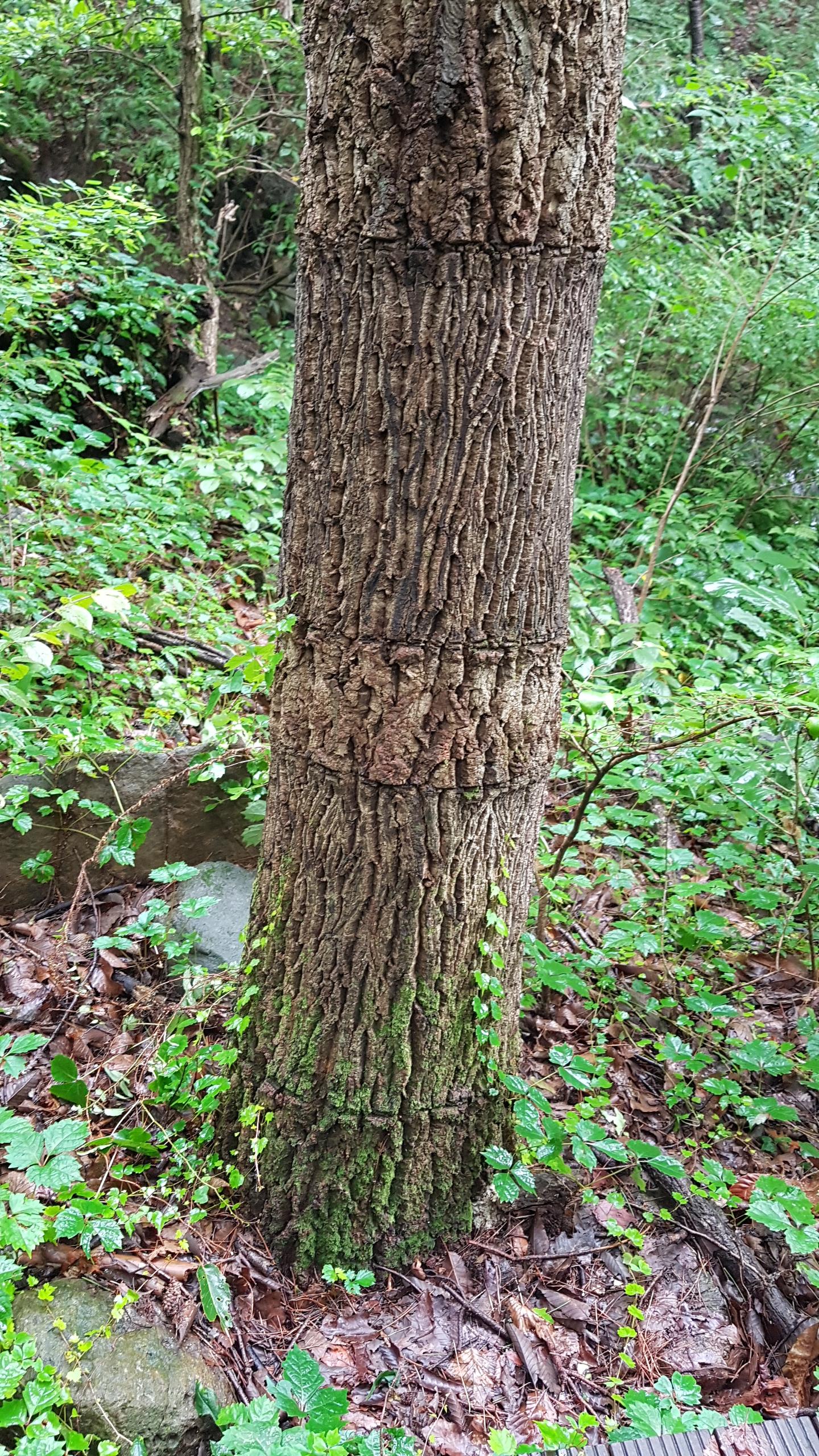 참나무 껍질을 벗겨갔는데 자생적으로 복구가 되고 있네