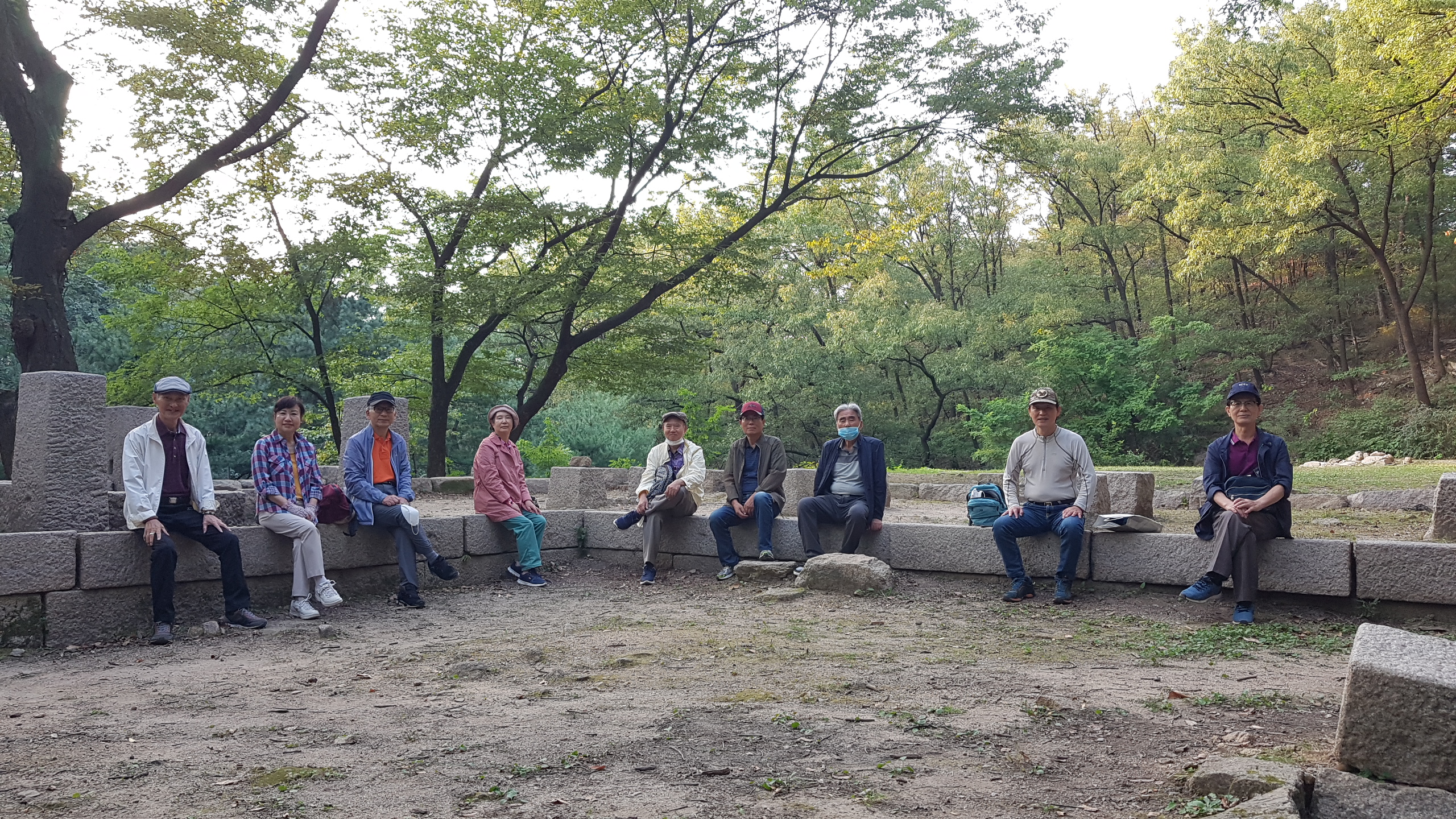 ※9.28(월) 15:30 경북궁역3출구에서 고교 친구와 가족들 9명이 만나 버스타고 부암동주민센타로 15분정도 이동하여 부암동길따라 비탈을 올라 능선에서 북한산전망 관망 후 뒷편 백사실계곡으로 이동. 외나무다리를 건너고 숲속 오솔길 따라 별장터인 백석동천에서 휴식.