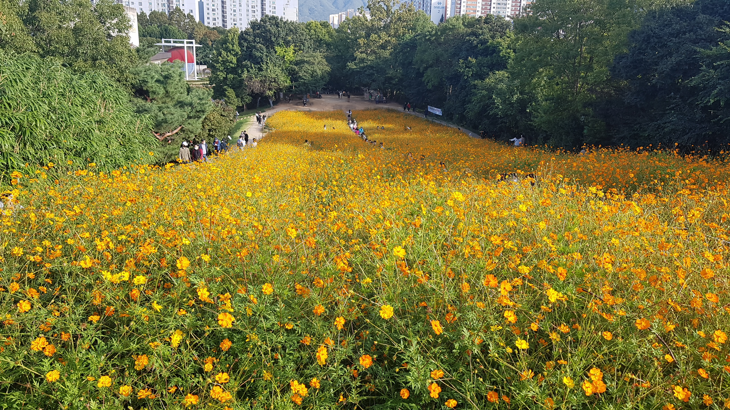 꽃을 찾아오는 연인들, 가족들, 친구들, 그들의 아름다운 마음처럼 가을은 예쁘게 익어가고 있다.