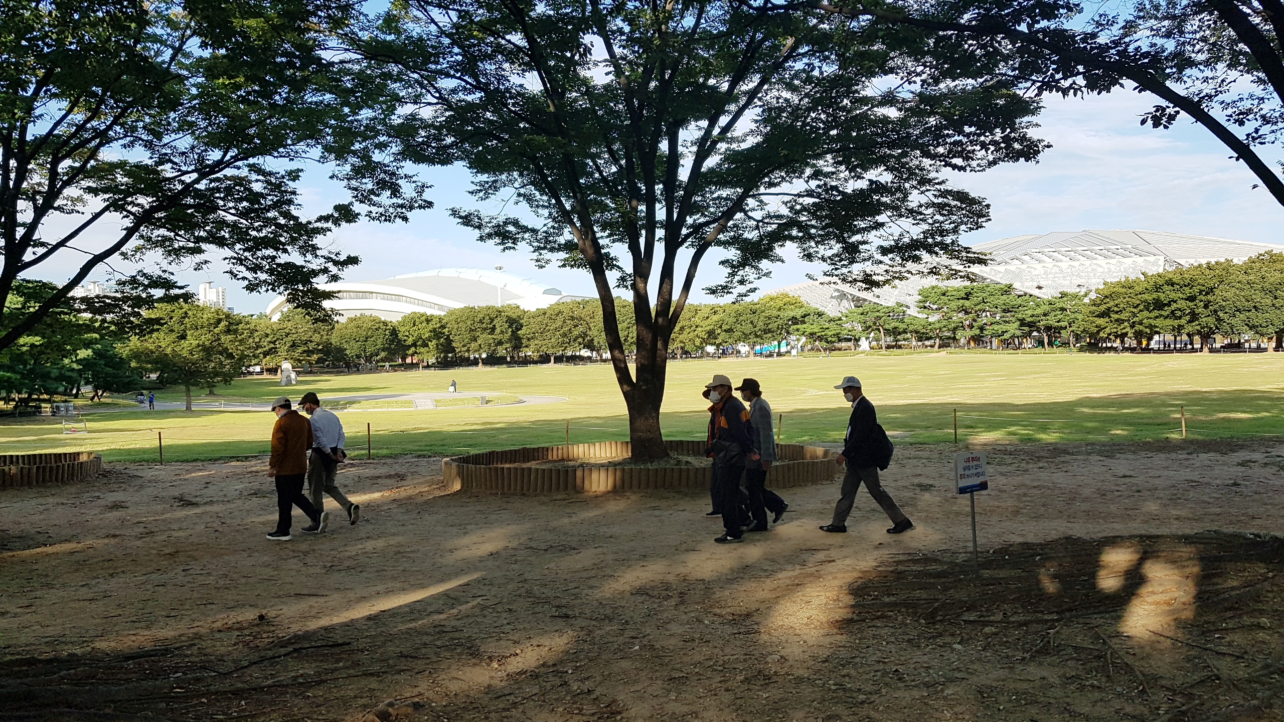 실내테니스장옆~ 장미광장~ 들꽃마루~ 잔디광장~ 정이품송장자목~ 토성 윗길 산책로~ 평화의문 산책 후 저녁식사