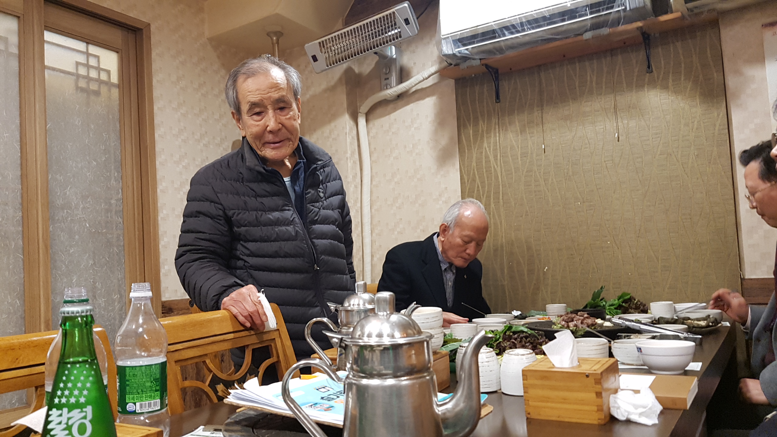 충무로역 부근의 연밥식당에 4명씩 뚝 떨어져 앉아 점심공양.