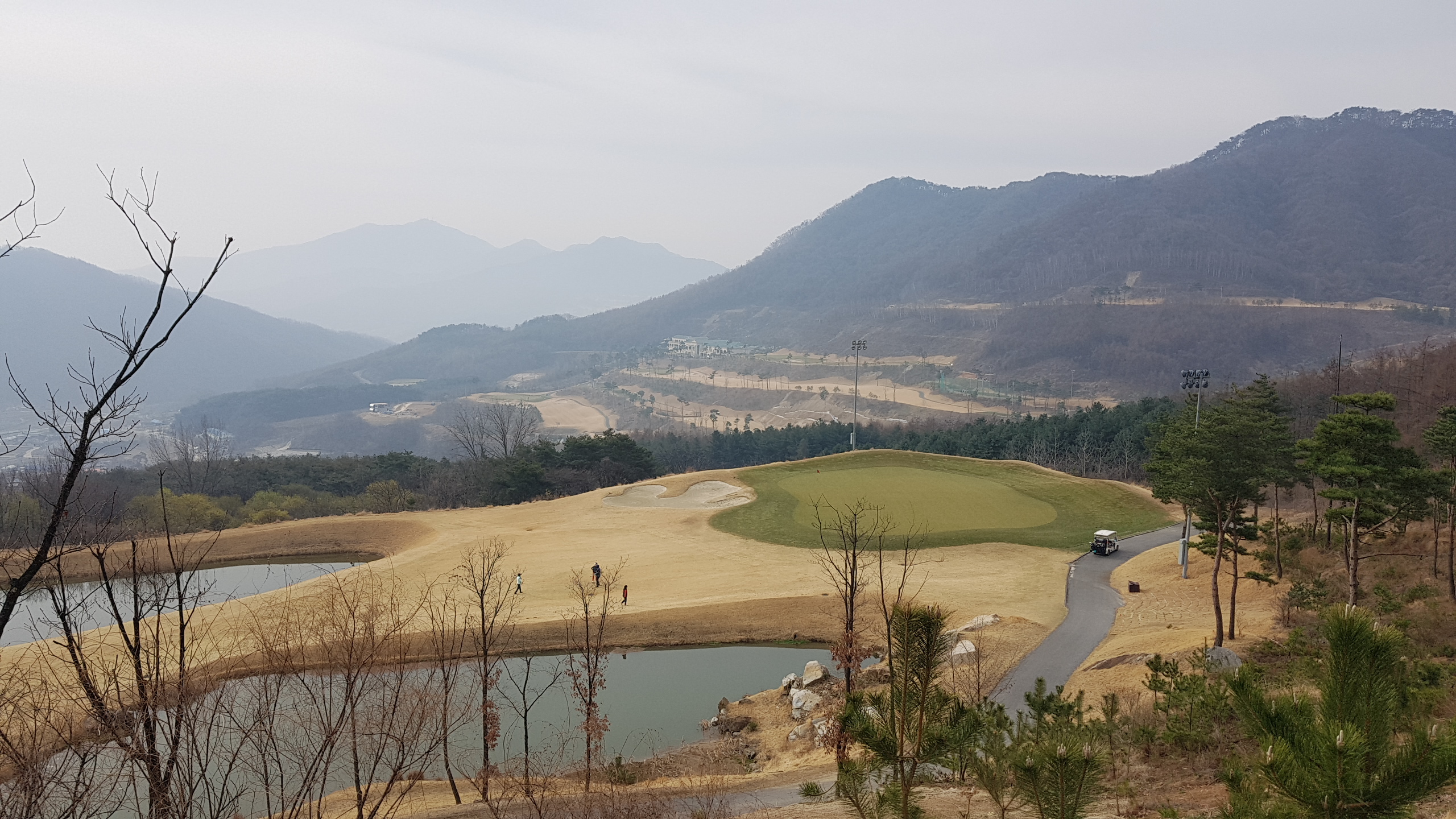 북쪽으로 병풍산으로 둥그렇게 둘러싸인 아담한 세일cc