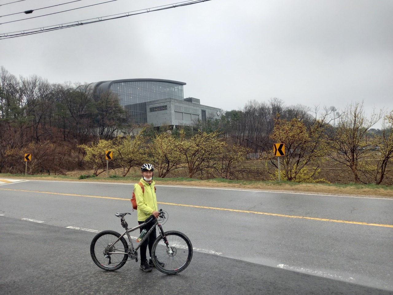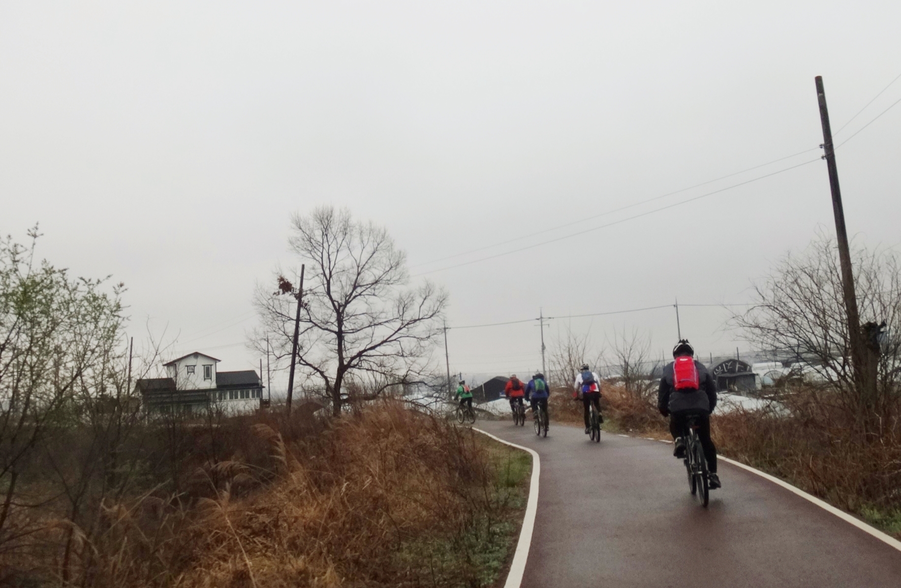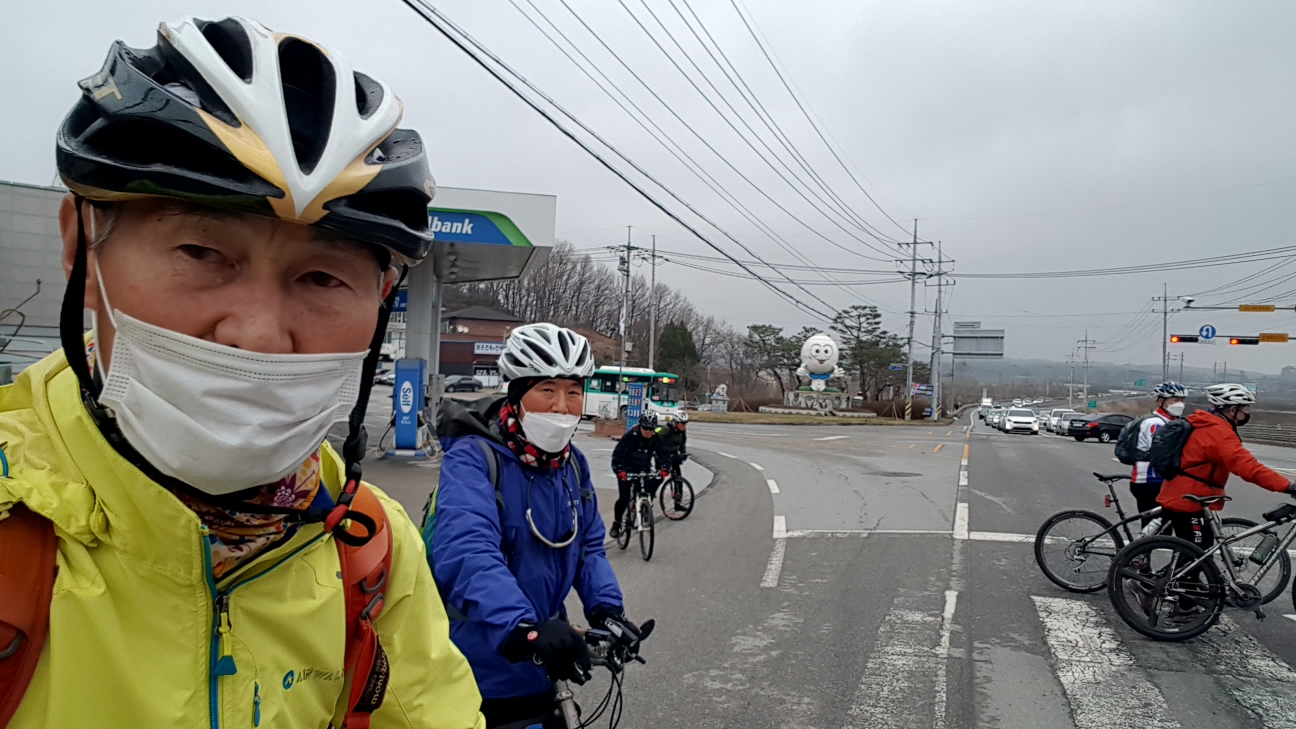 신둔도예촌역하차하여 10시경 라이딩 시작 - 아직도 봄비가 부슬부슬 내린다.