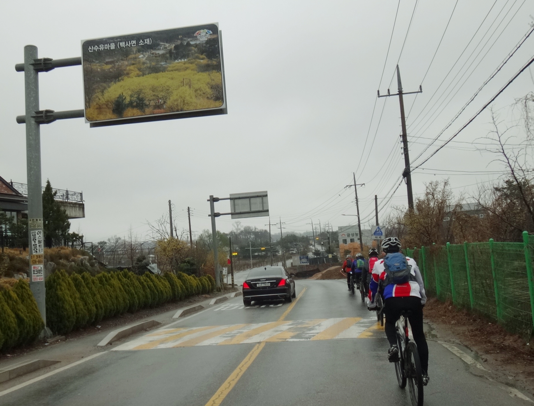 산수유마을 안내간판이 보이는데... 곧이어 현수막에는 방문하지 말라는 안내가 도로 곳곳에 붙어 있다.