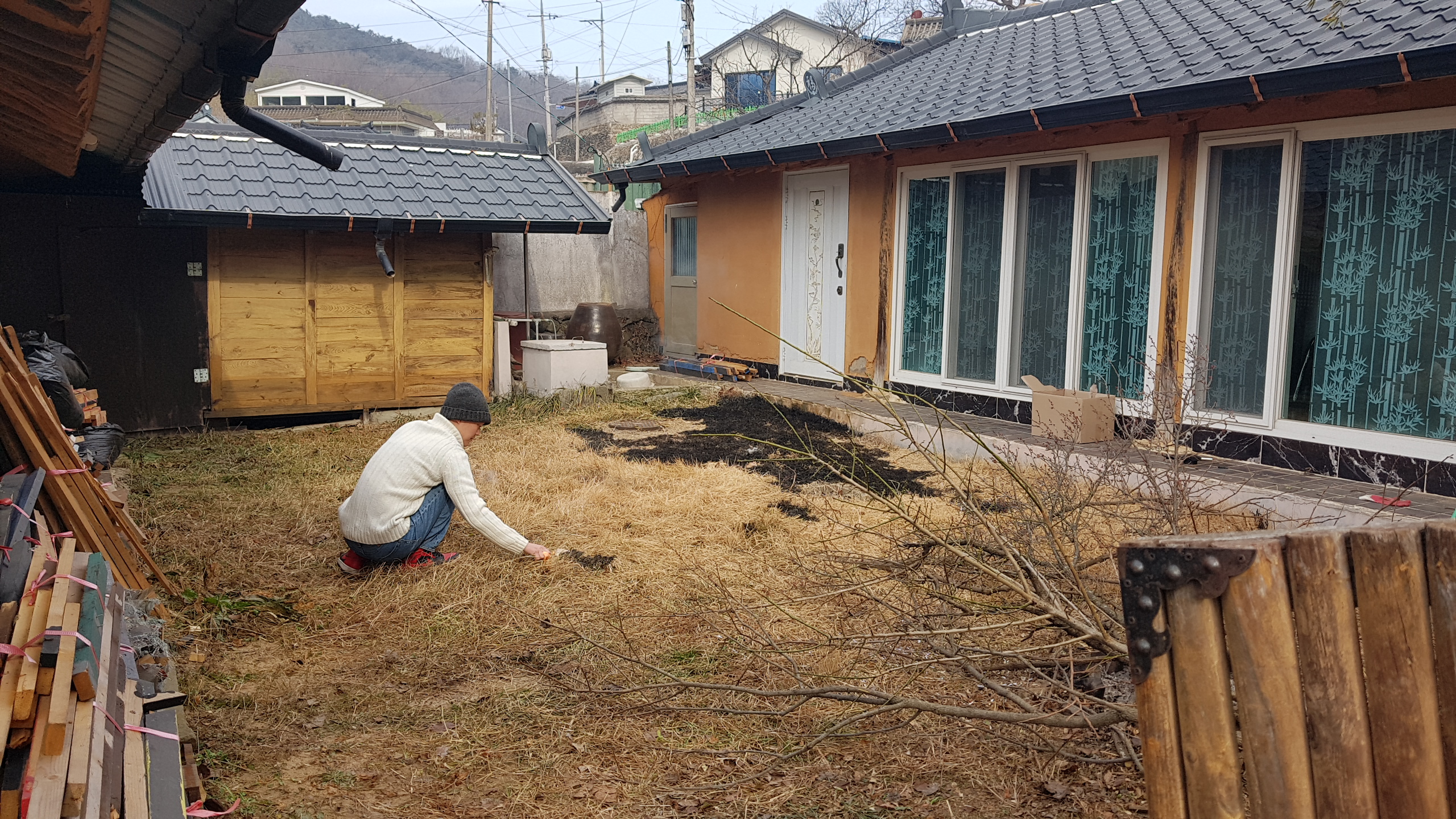 마당 잔디태우기