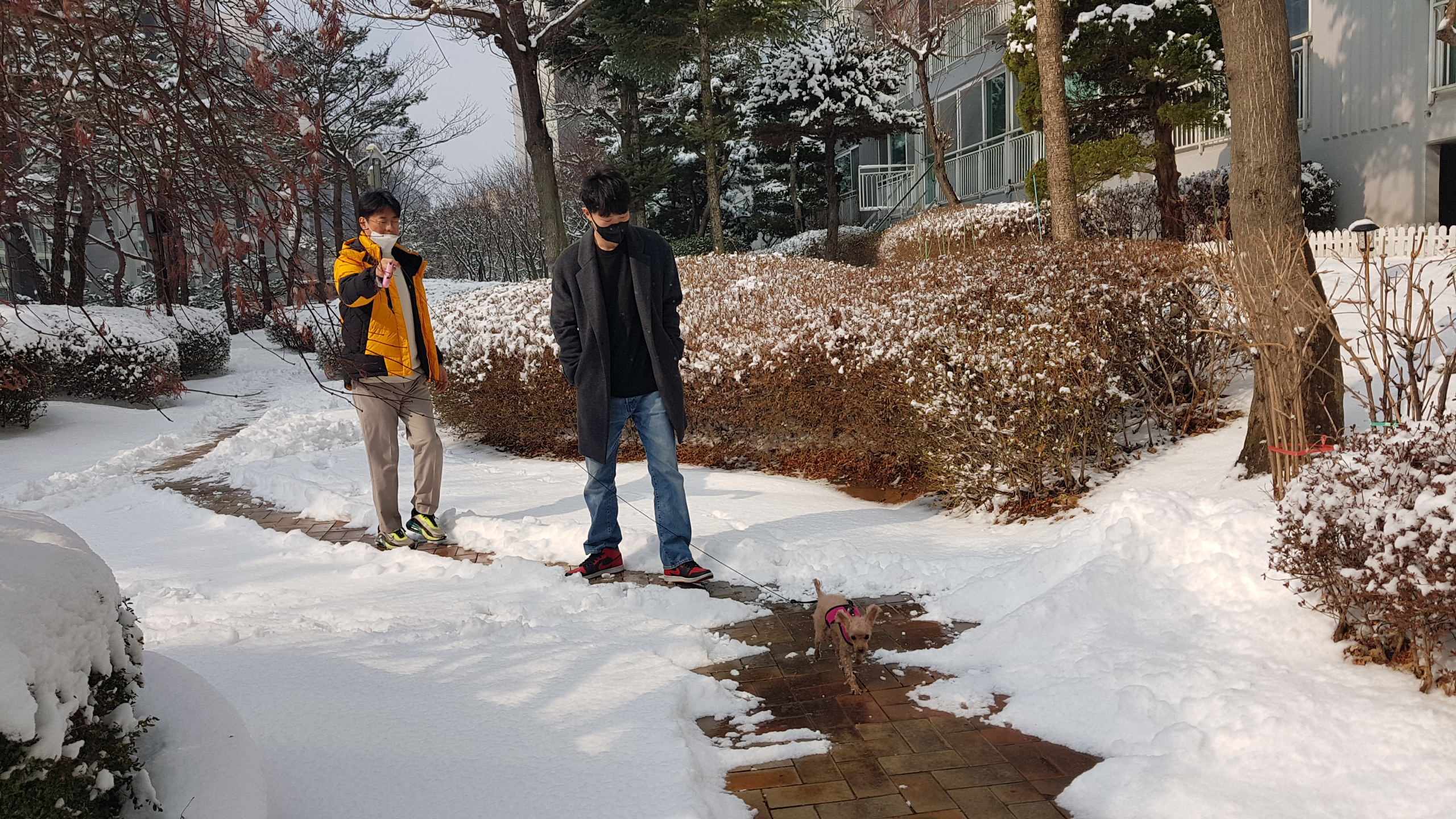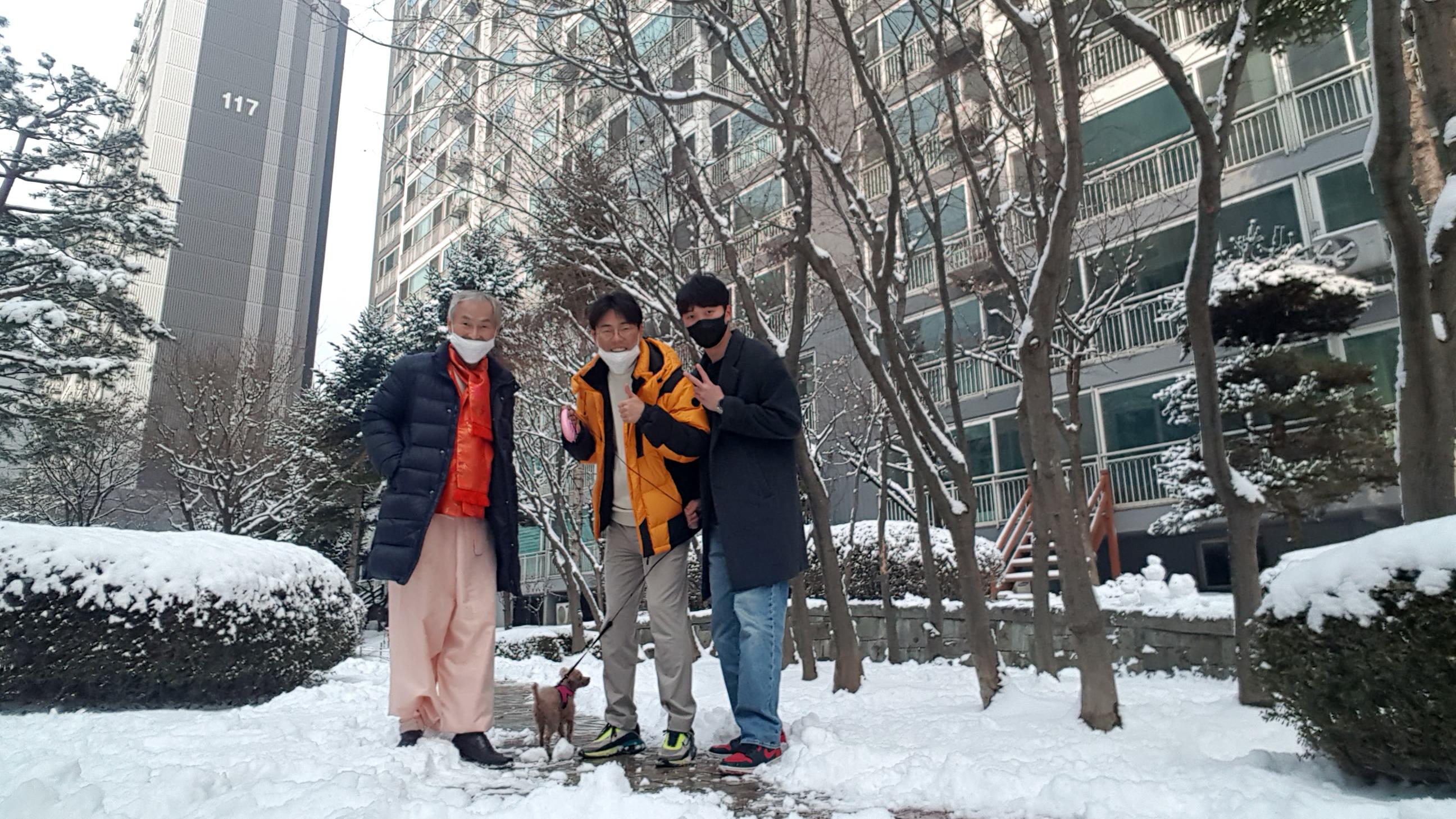 차례 후 아파트 앞 눈길 산책