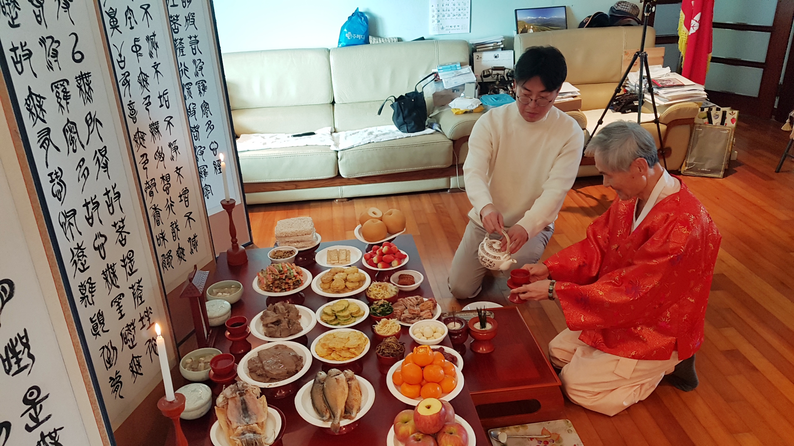 임인년 새해를 맞아 저희들이 올리는 이 음식은 하늘에서 내려온 것도, 땅에서 솟아난 것도 아닌 저희들의 정성으로 올리는 것이오니 흠향하시오소서.
