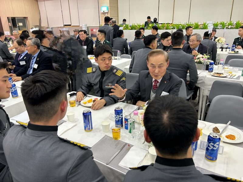 식사를 하는 2시간여 동안에 식탁마다 후배생도 5명과 선배가 오손도손 정답게 대화를 나누는 시간을 가졌다. 처음 만나는 손자뻘되는 생도들인데도 생도생활부터 군생활의 같은 길을 걷는 공감대로 어떤 이야기도 편안하게 통한다.