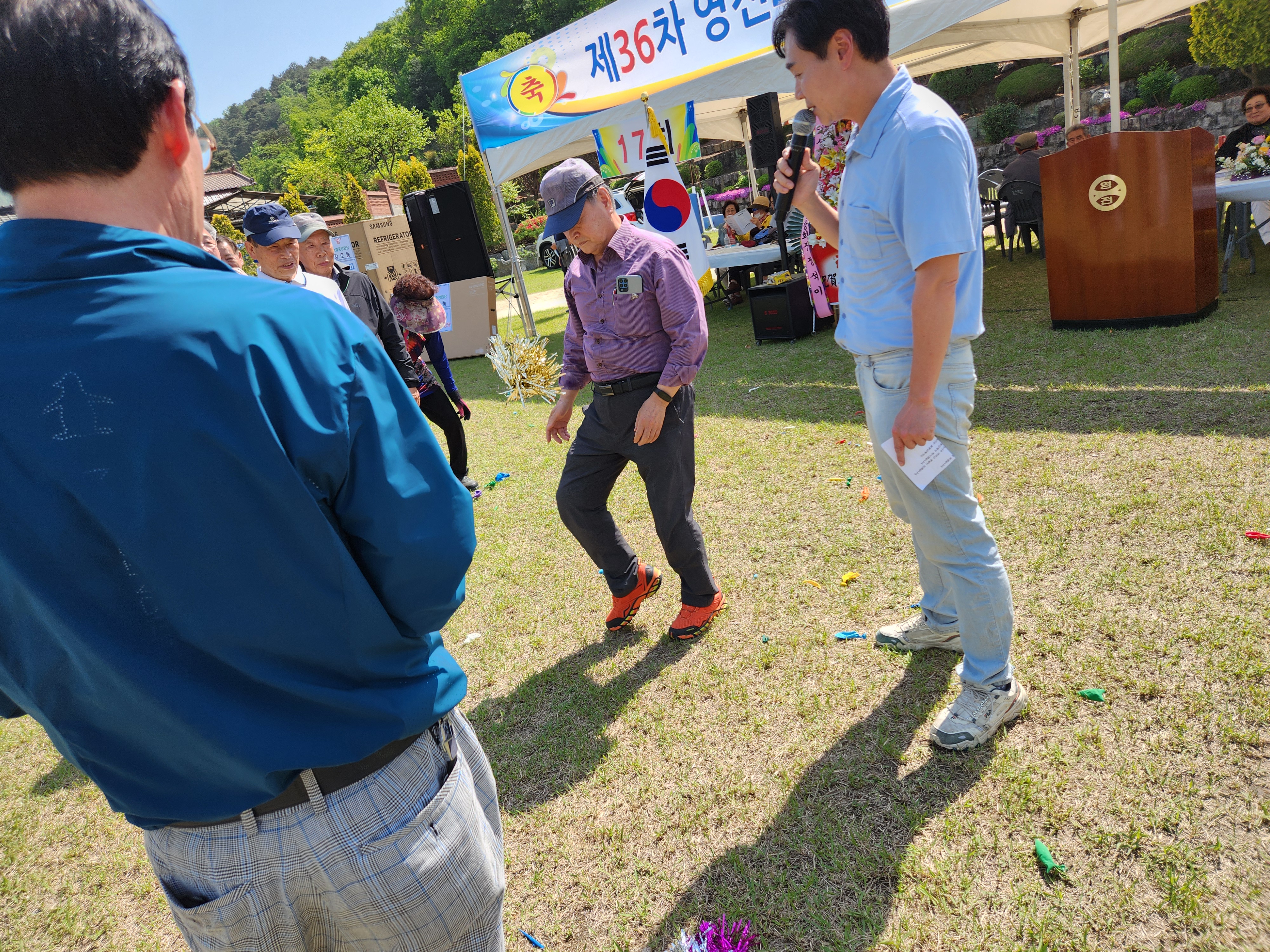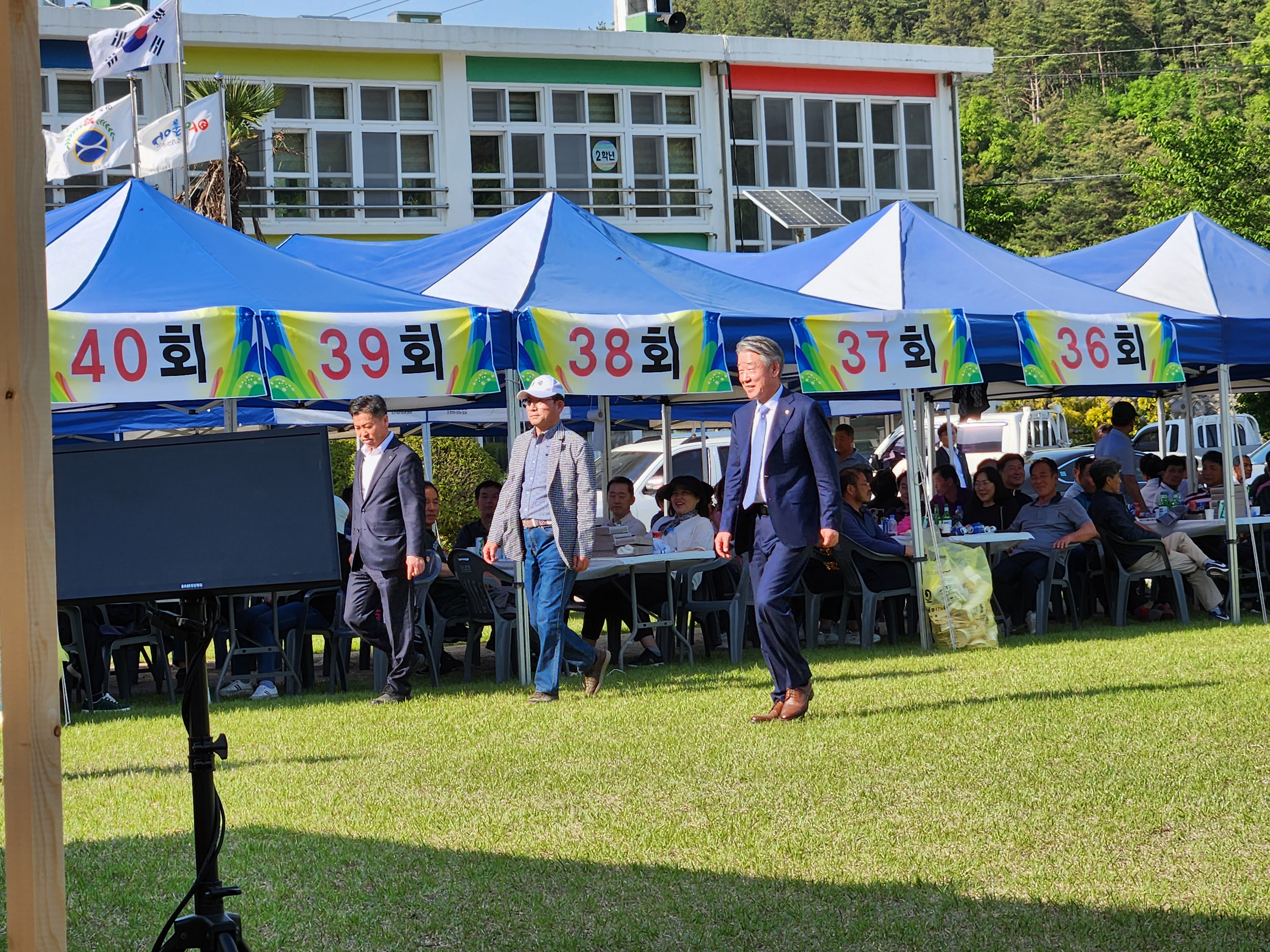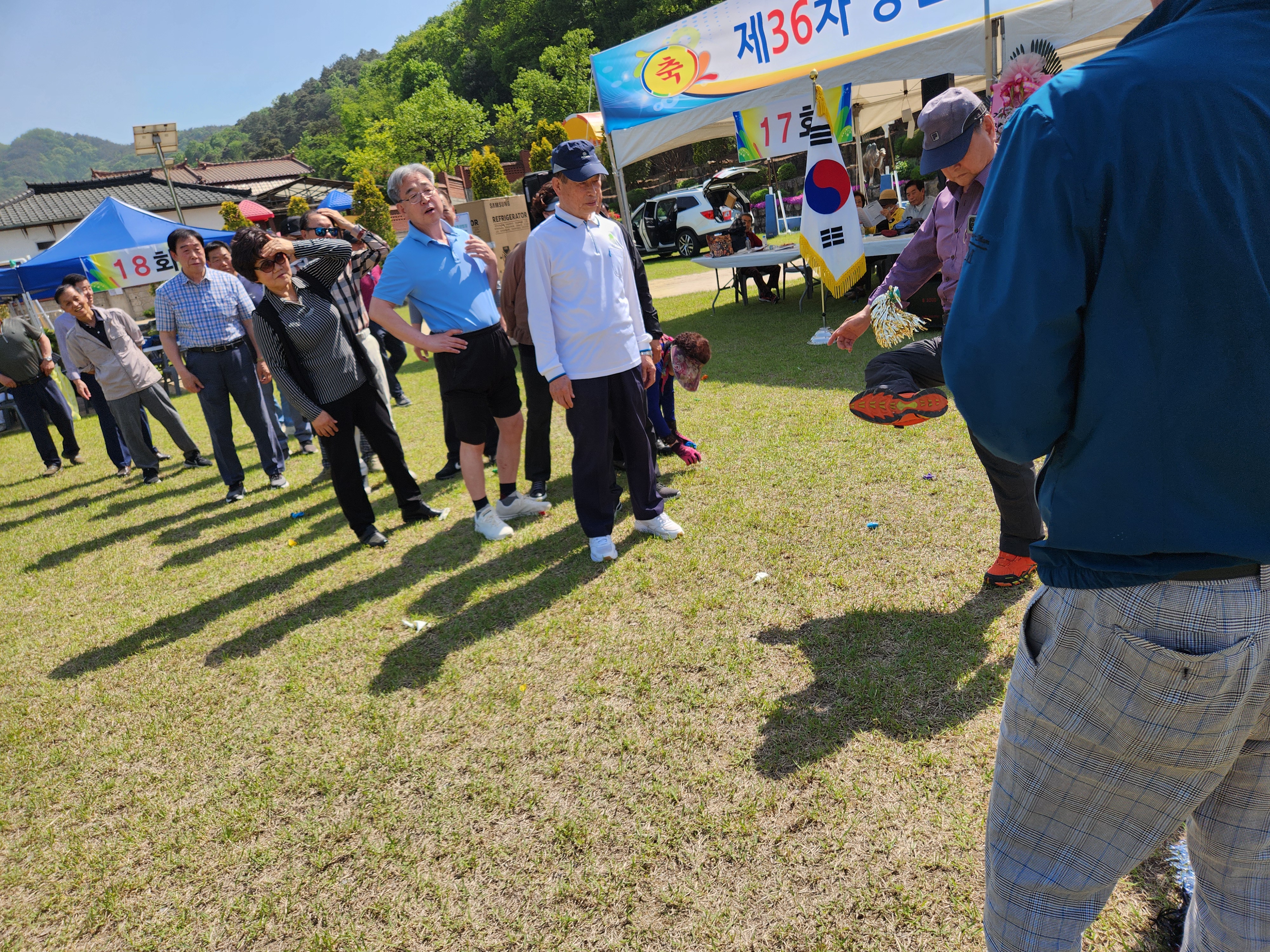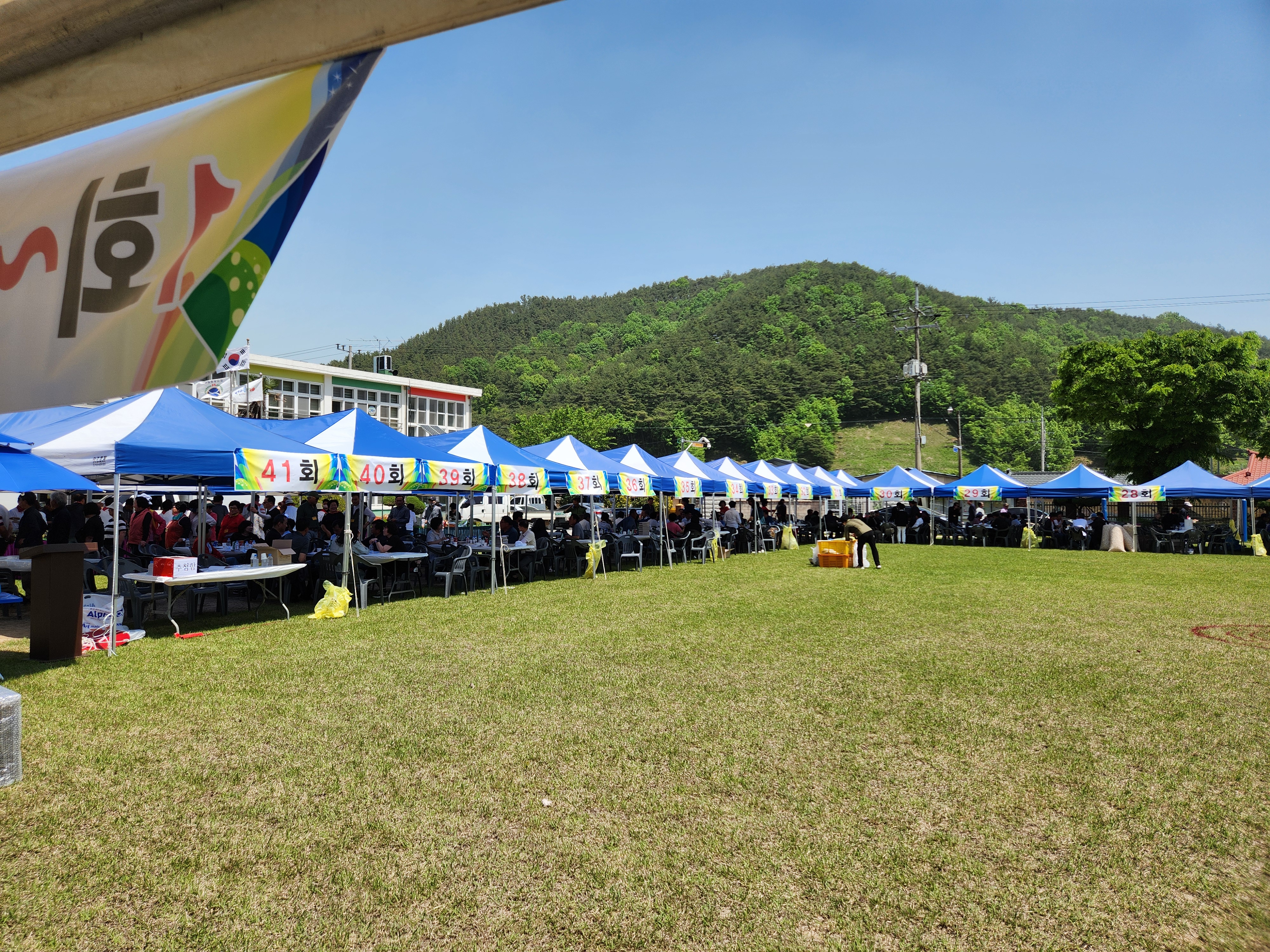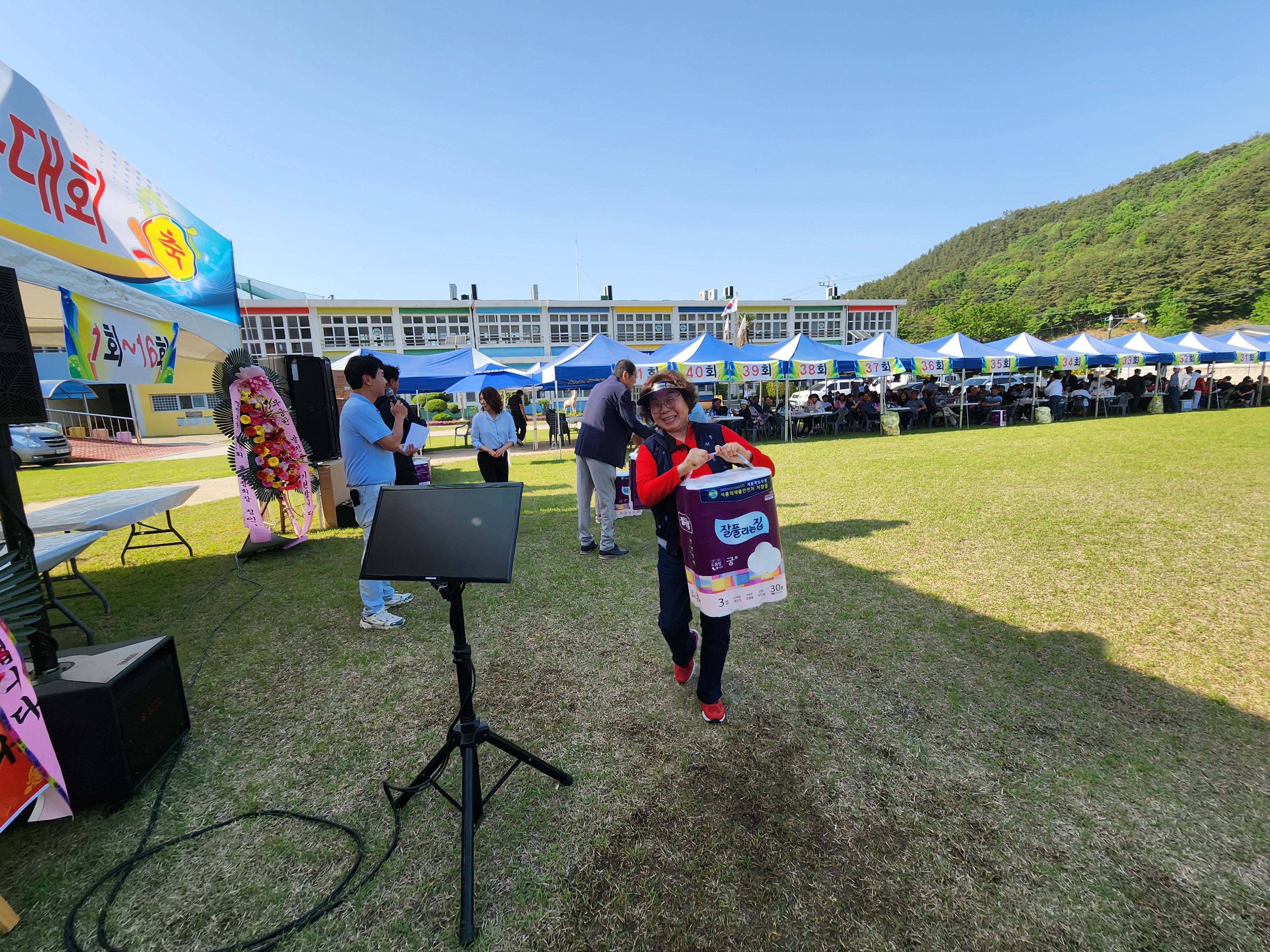 화창한 봄날씨에 운동장 둘레에 천막을 설치하여 그 중앙 공간에서 체육대회가 진행되었다.