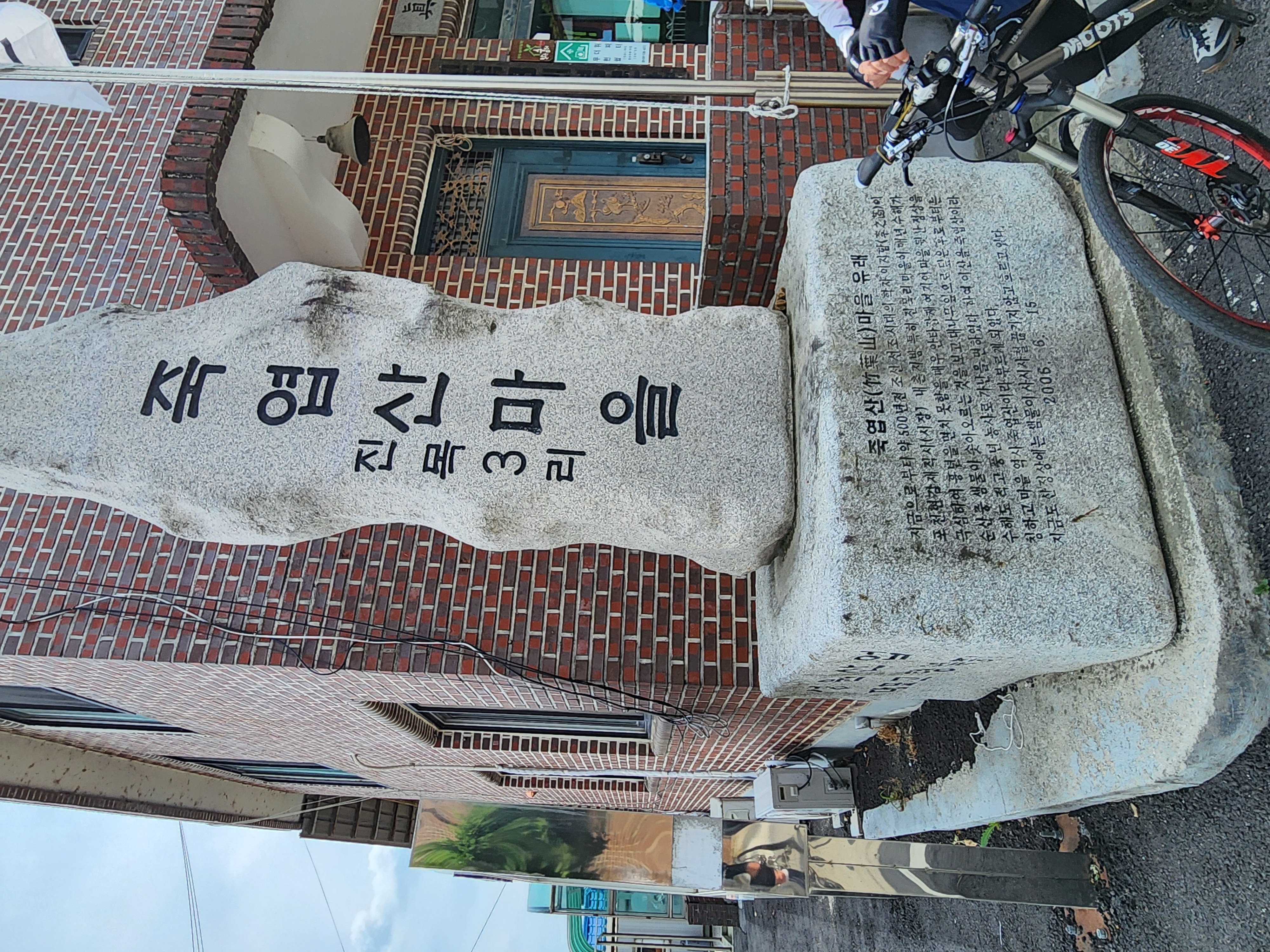 예전에 들렀던 죽엽산마을의 역사적 사연 - 홍수재난이 계속 발생함에 따라 현감이 뒷산에 대나무를 심도록 비방을 한 이후 재난을 겪지 않게 되었다는 역사가 전해져 온다.