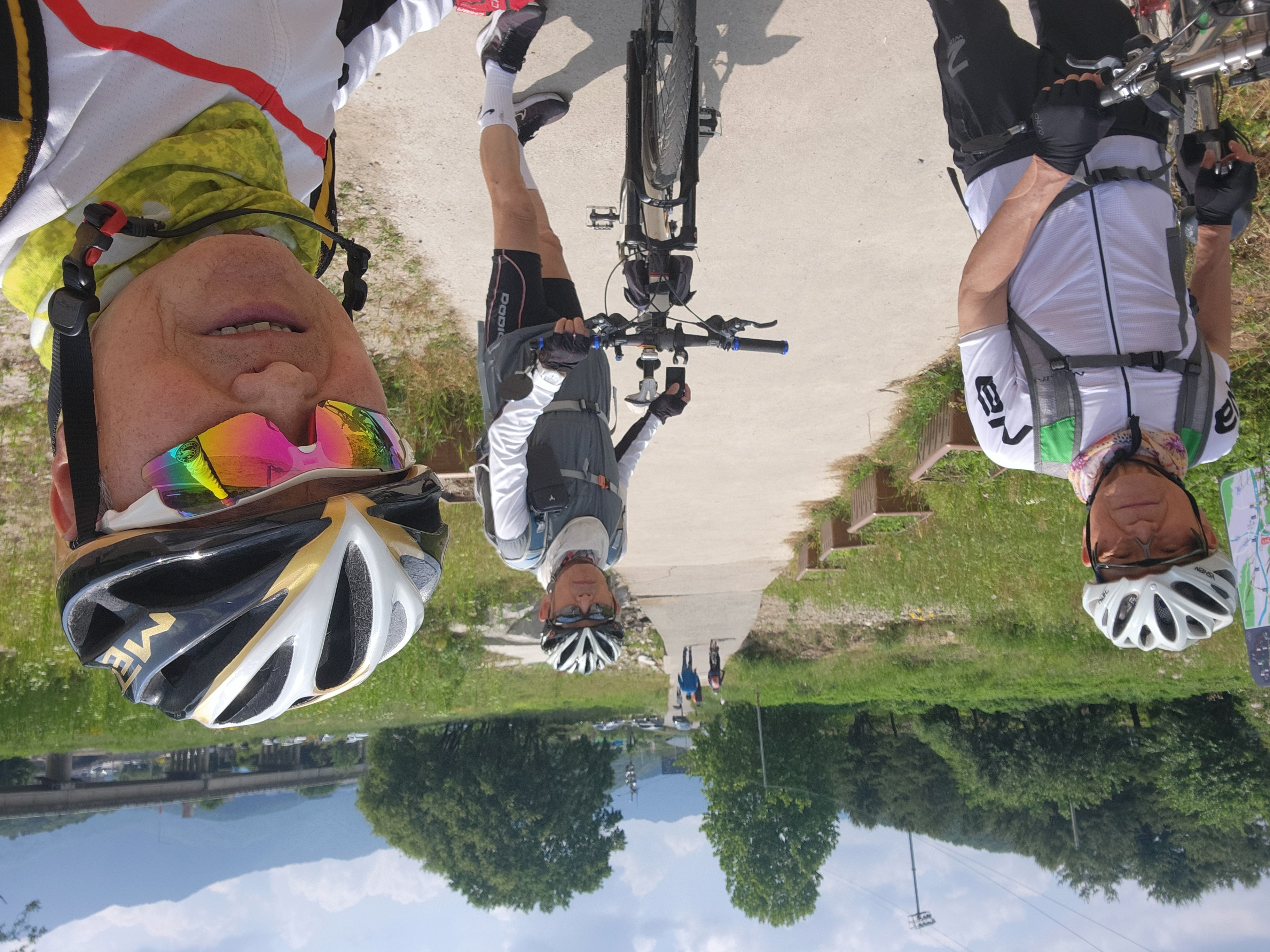 길찾기 전문가인 김명수동기가 앞장서서 구글지도로 찾은 길을 따라 안내해주어 뒤따라 가기만 하면 된다. 마치 네비따라 운전하듯이 어딘지도 모르고 따라간다. 맨뒤쪽 홍토마동기가 주요 포인트마다 사진을 찍으면서 따라온다. 라이딩결과는 스머프차 대장이 소상하게 코스에 연계된 역사적 사실들과 현재의 실상을 눈에 보이듯이 묘사하고 정리해서 올려주는 등 4명의 분담이 잘되어 있다.