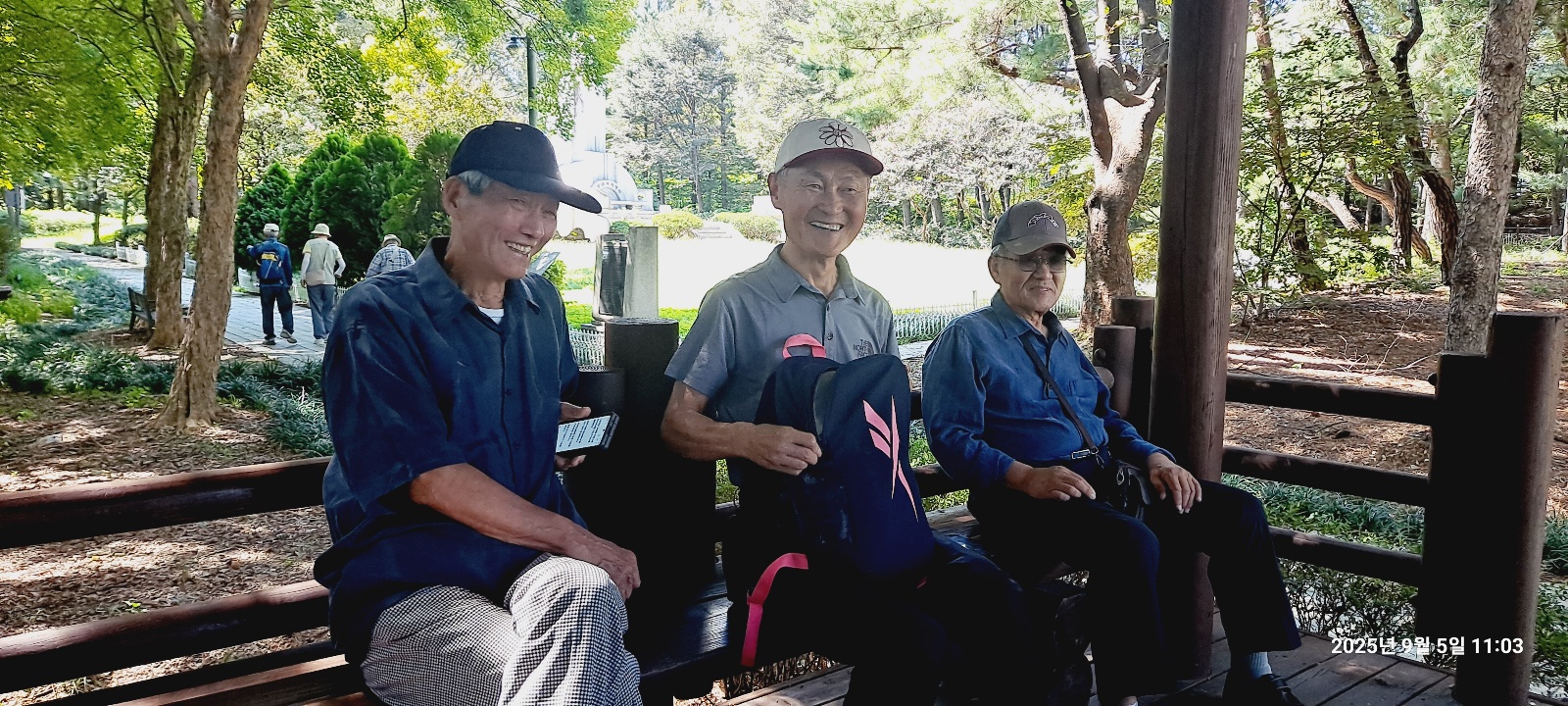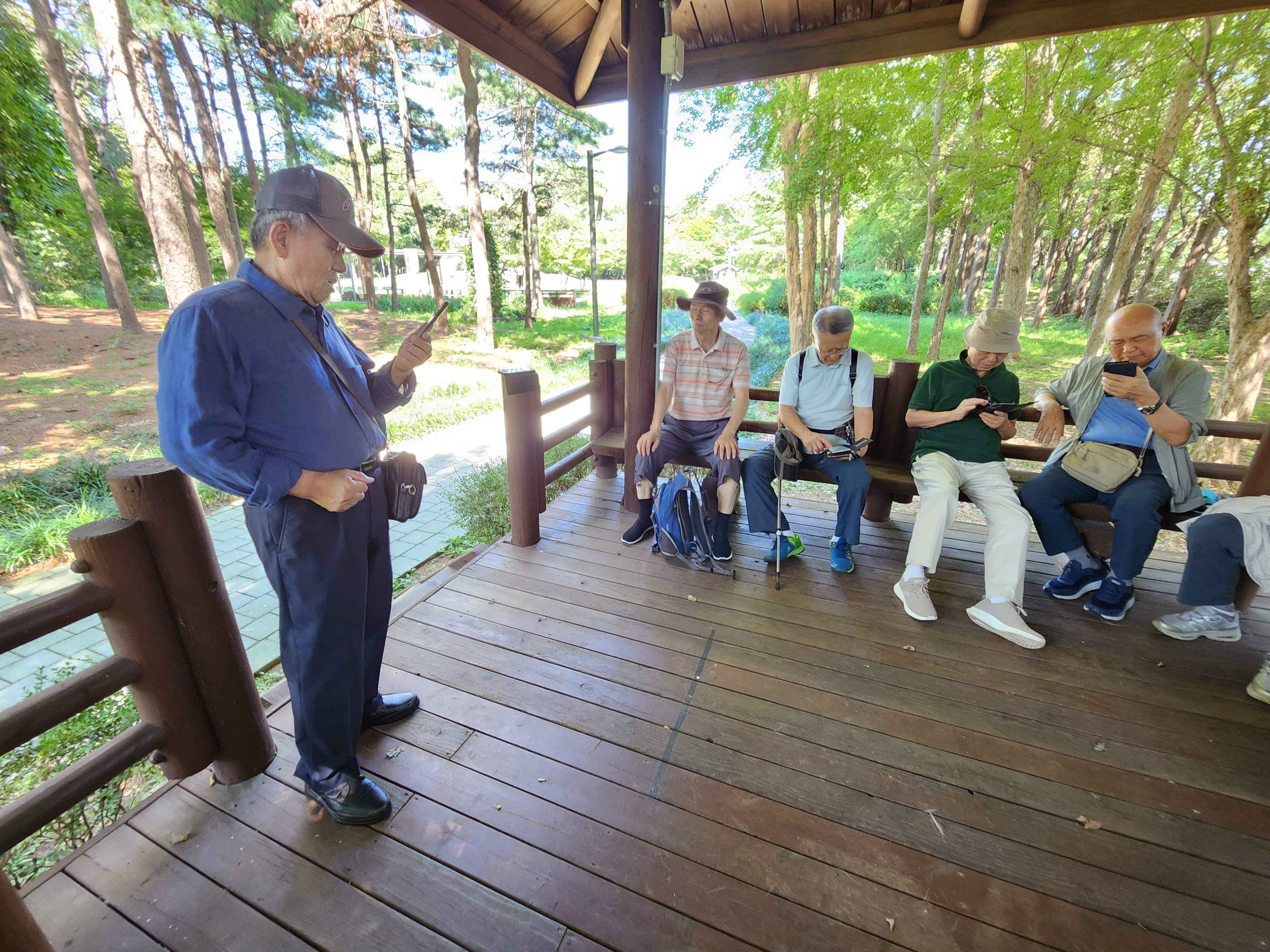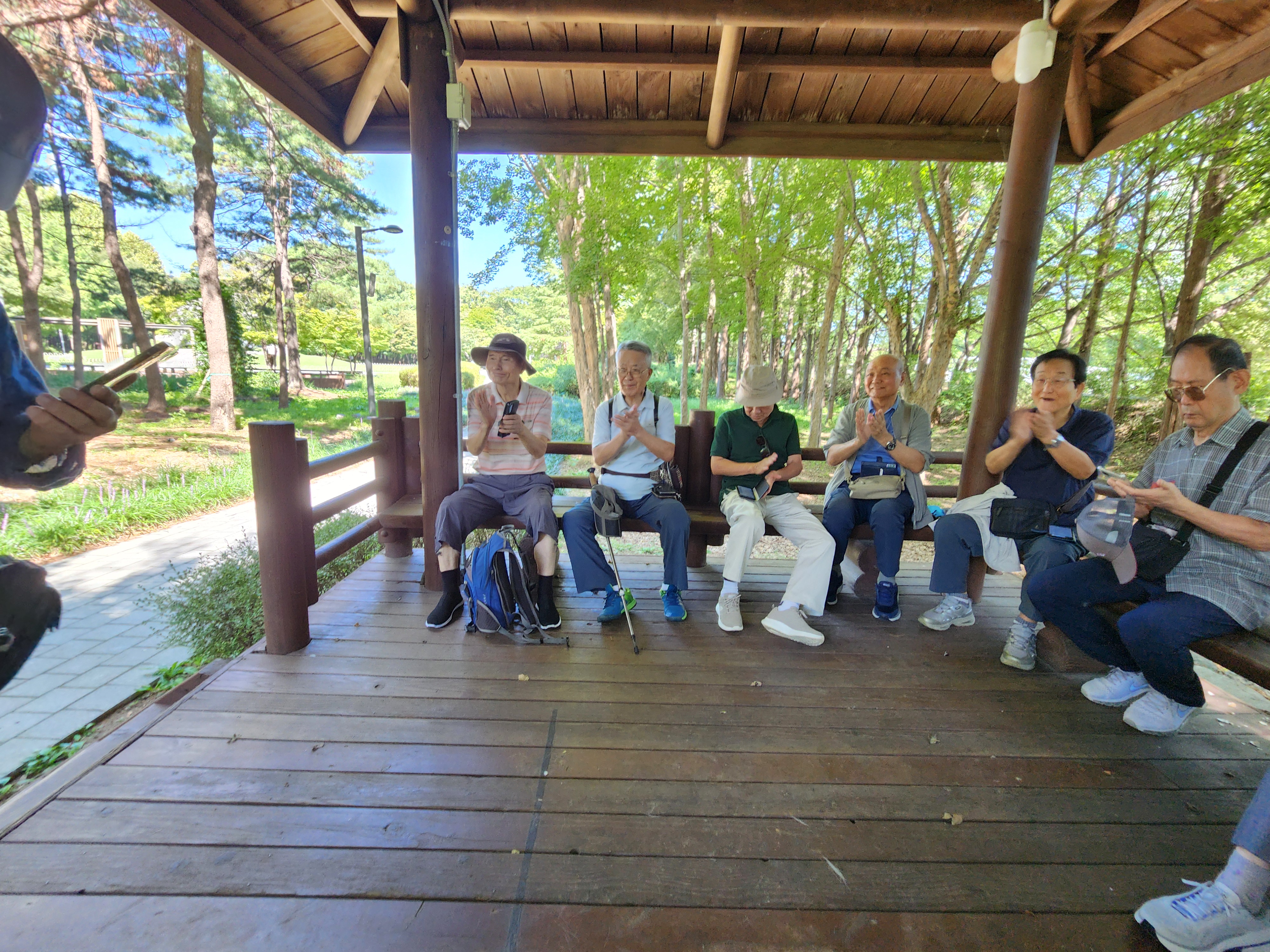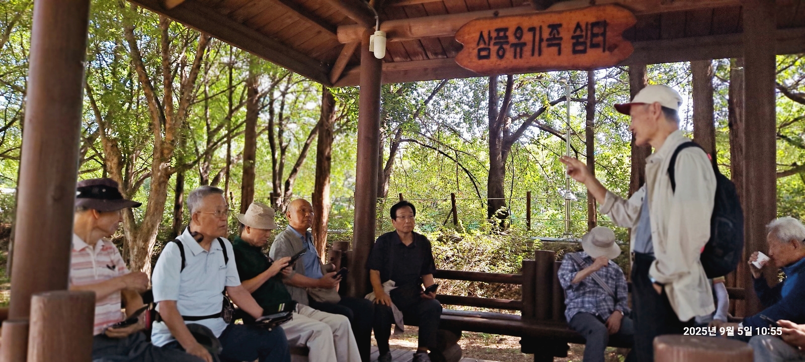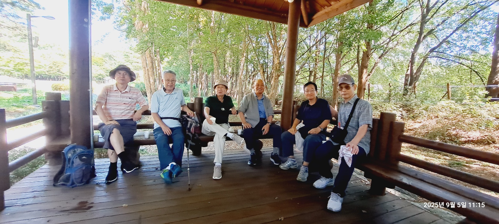 '25.9.5(금) 10:30, 양재시민의숲역 5출구에서 동기회 여의도포럼 9명이 만나 여의천 뚝방길따라 양재시민의숲 남측구간으로 진입, 추모비지역을 돌아 정자 쉼터에서 서사시 낭송회와 간식을 하고,