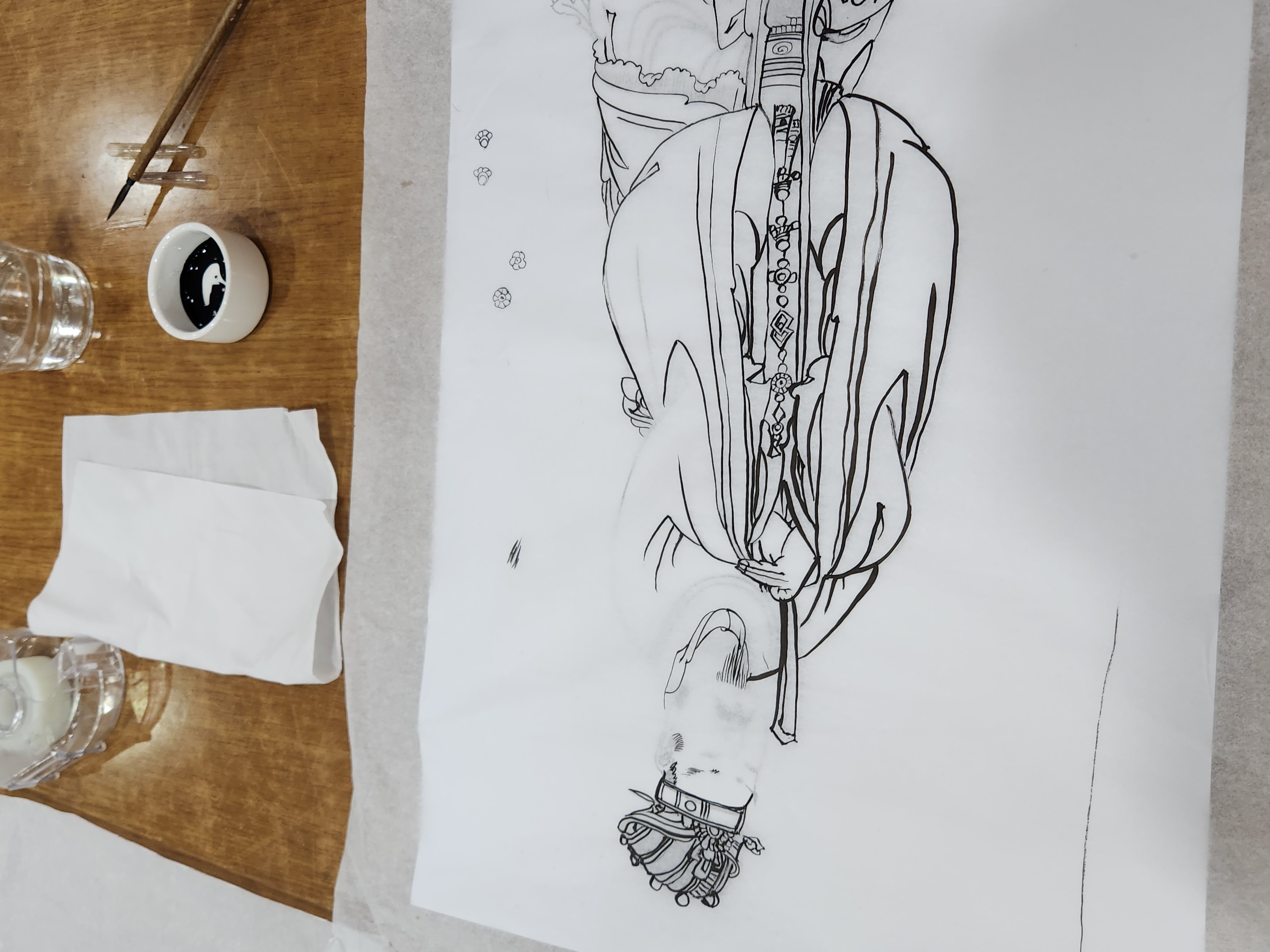 충정사 지하 식당에서는 불화그리기 공부가 한창이네.
