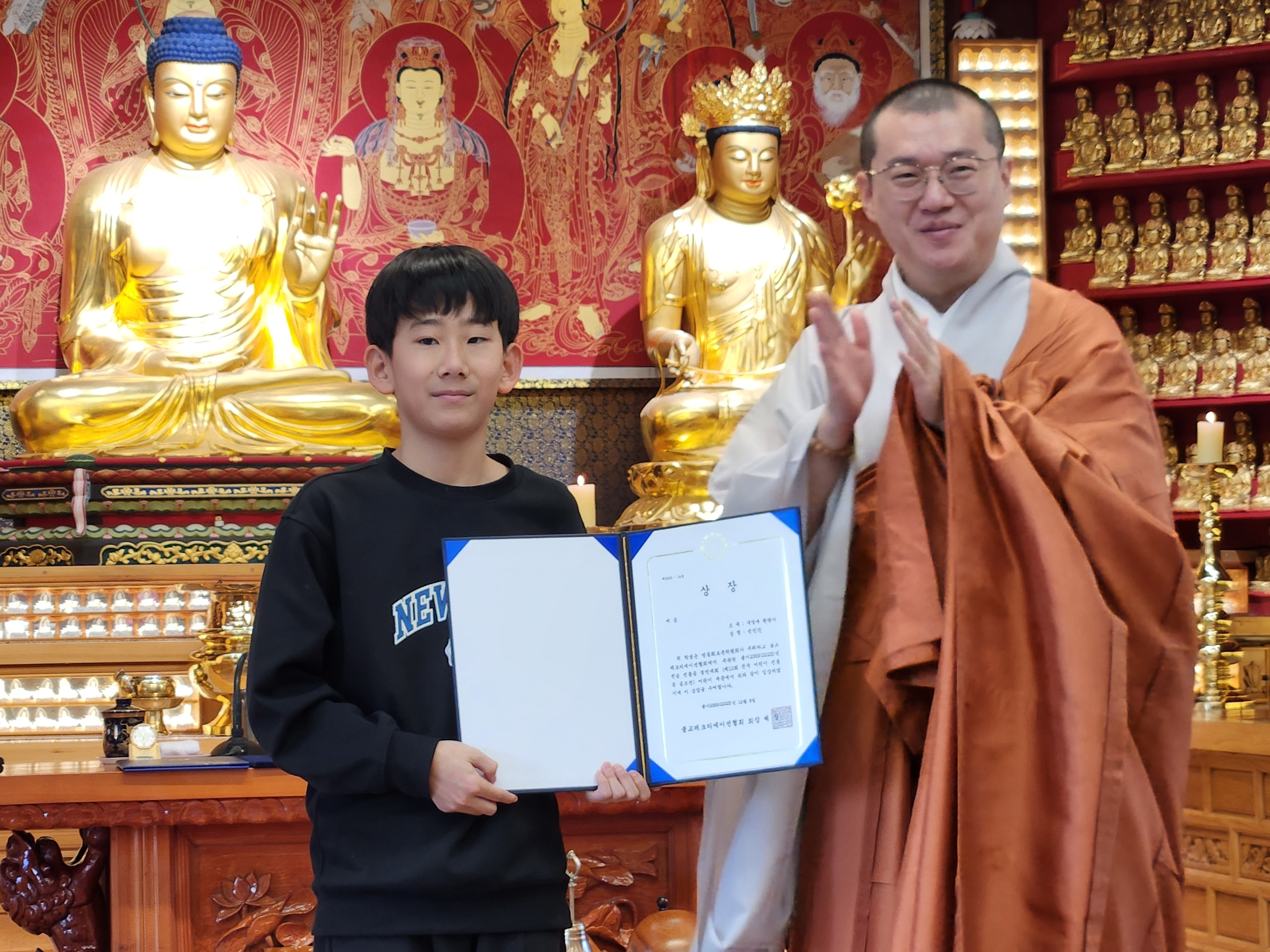국방부원광사 12.21 일요법회에서 기도와 종단 전통등 공모전 어린이수상 축하