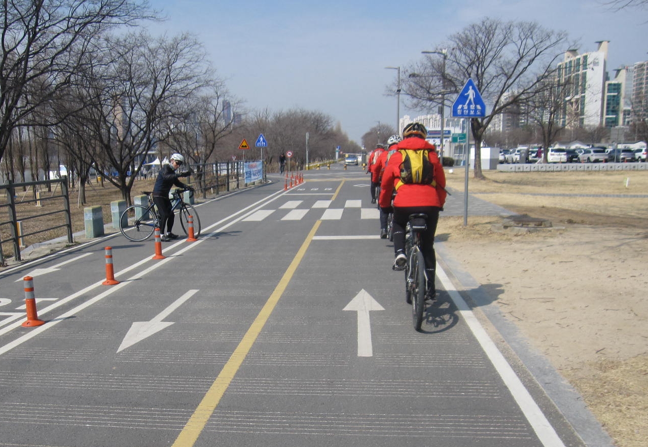 한강변 자전거길은 남쪽, 북쪽이 모두 아름답고 라이딩하기에 편안해서 좋다. 이명박대통령 시절에 4대강사업이 대대적으로 이루어지면서 하천정비와 고수부지, 제방, 보가 설치되어 명물이 되었고 하천양안에는 자전거길이 조성되었다. 당시에는 왠 자전거길이냐는 비판들이 있었지만 국민소득이 어느 수준이 되면 테니스, 자전거, 골프 등의 스포츠가 활성화될거라는 선견지명이 있었던 덕분이다. 전국 어디로든 다 연견될 뿐만 아니라 차로는 못가는 지역까지 갈 수 있으니 대부분의 코스가 아름답기 이를데 없다.