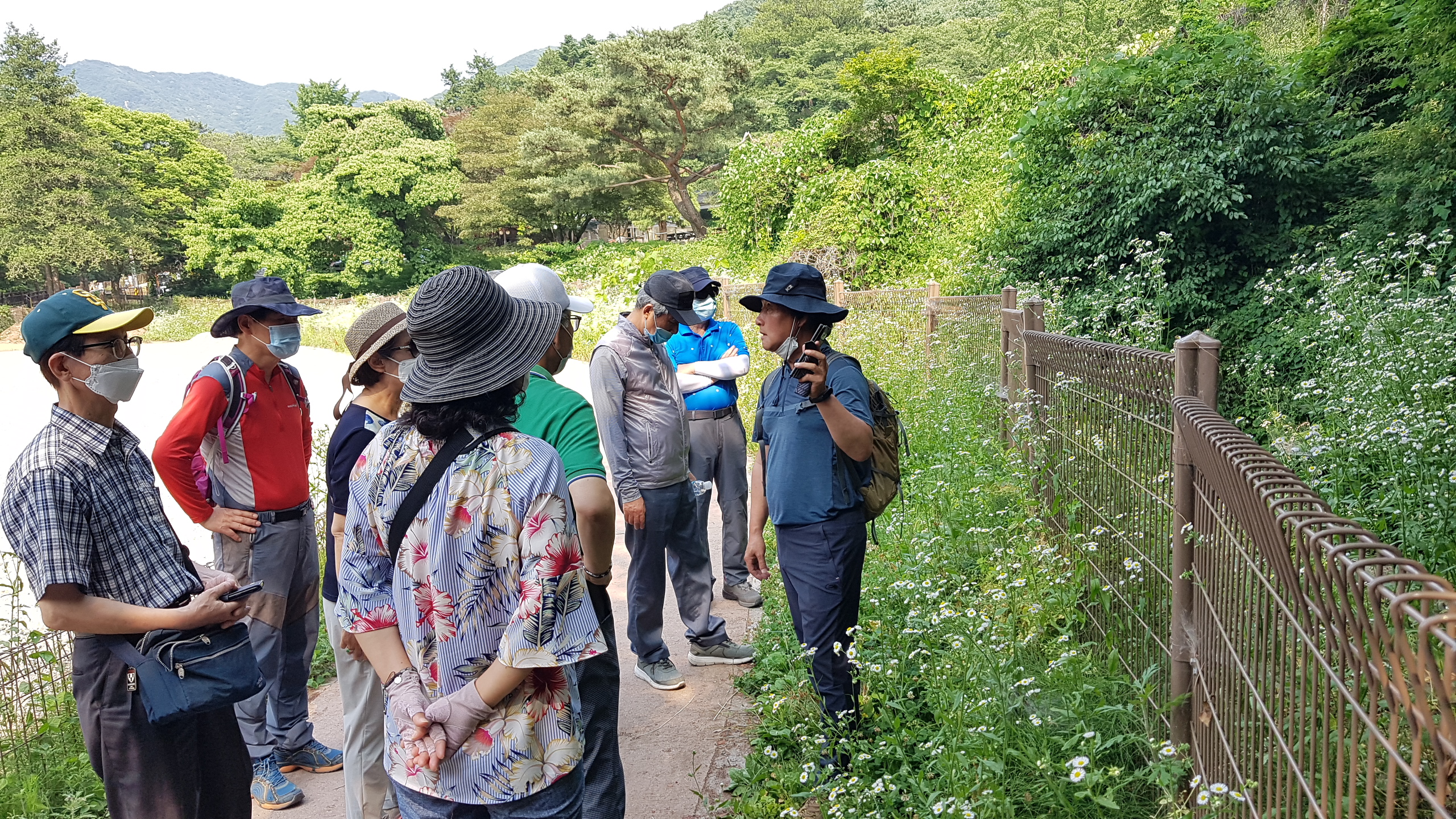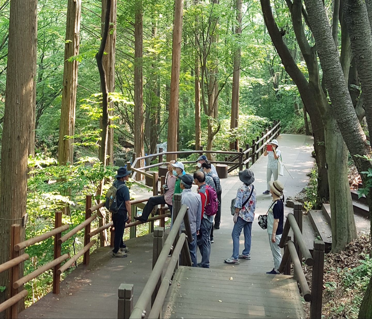 서울 수도권에서 전철로 쉽게 모여서 마을버스타고 조금만 가면 되는 이런 코스들이 곳곳에 있을텐데 사람들이 잘 모르고 이름있는 곳만 찾아 다니고 있어 보인다. 매월 4번째 월요일을 답사일로 정하여 오후시간에 맞추어 가면 어딜가도 한적해서 좋다. 숲해설사의 안내와 설명에다 체험프로그램과 산림치유사의 지도와 건강첵크까지 곁들이니 종합셋트 답사라 할만하다.