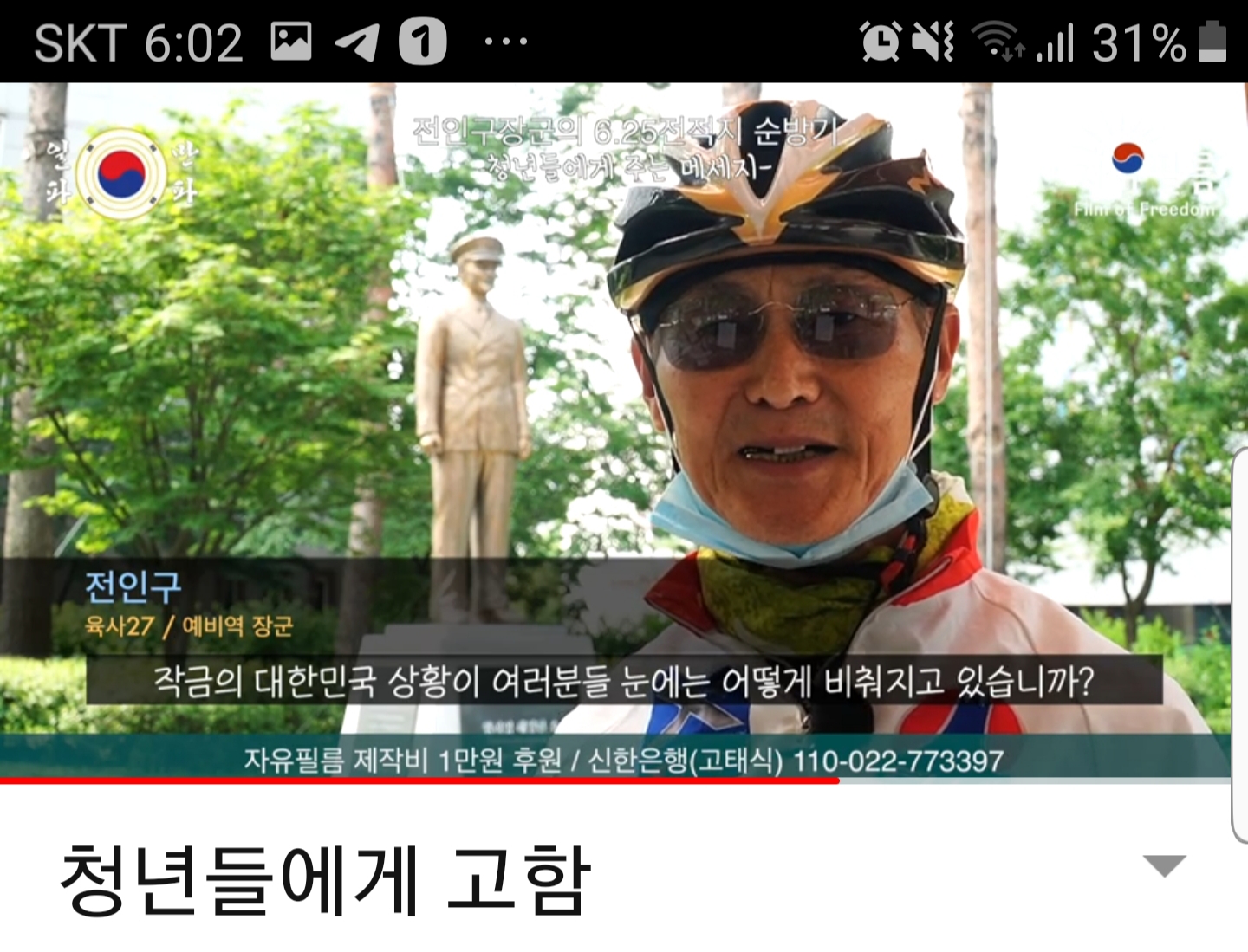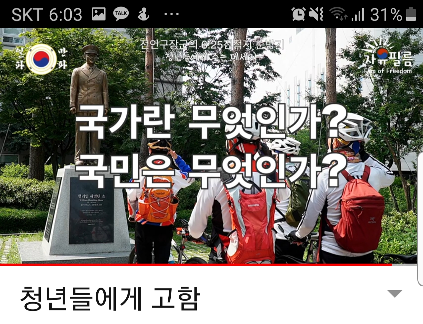 '어렵게 지켜져온 대한민국의 자유'에 대한 유튜브영상을 촬영했다.
