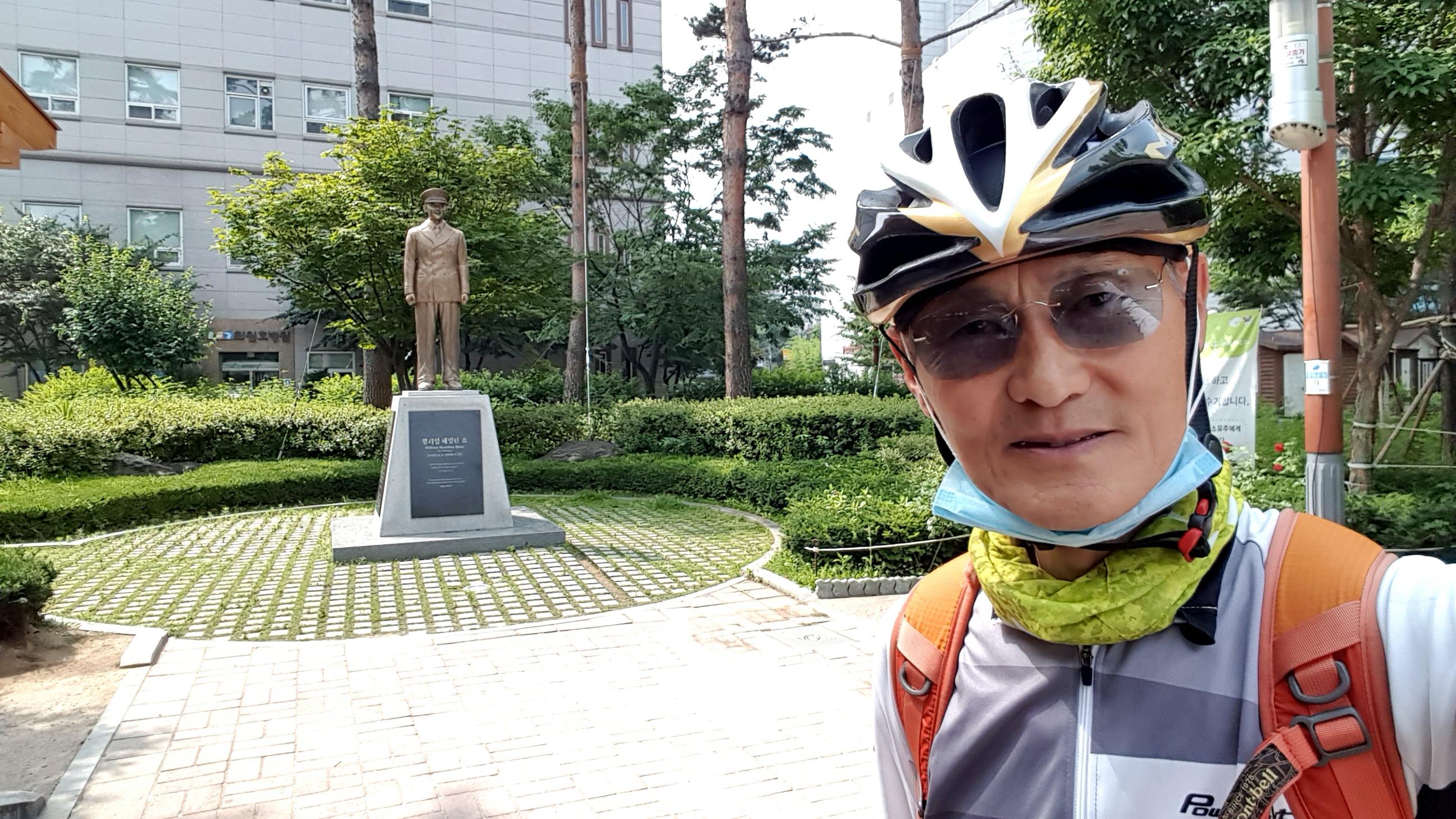 7.5(일) 09:30, 6호선 역촌역에서 고교 바이콜릭스 회원 4명이 만나 은평평화공원 미해군 윌리엄 쇼대위 동상 앞에서 자유필름 유튜브 촬영 후
